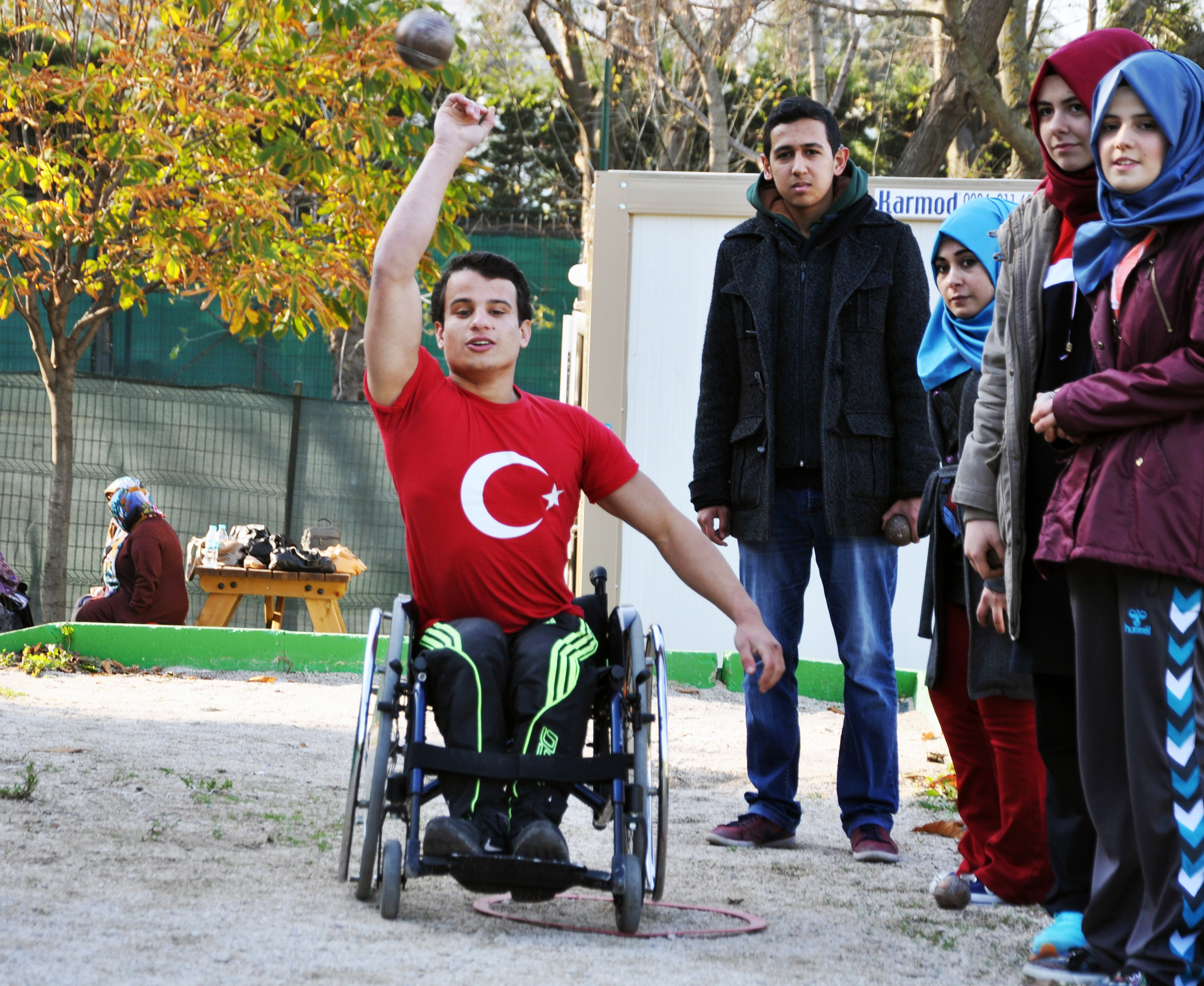 Bursa Kent Konseyi bünyesinde çalışmalarını sürdüren Engelliler Meclisi, Reşat Oyal Kültürparkı Bocce sahasında 3 Aralık Dünya Engelliler Günü’ kapsamında Petank Turnuvası düzenledi. Üçlü, ikili ve tek kişiden oluşan takımların özel misketleri belirli bir mesafeye fırlatarak diğerler misketleri vurmaya çalışmasıyla oynanan petank turnuvasında bir araya gelen engelli bireyler, yeteneklerini sergiledi. Bocce (Petank) Milli Takım Antrenörü Ahmet Yaratılmış eşliğinde turnuvaya katılan 50’ye yakın engelli sporcu, hayat dolu tavırlarıyla dikkat çekti.