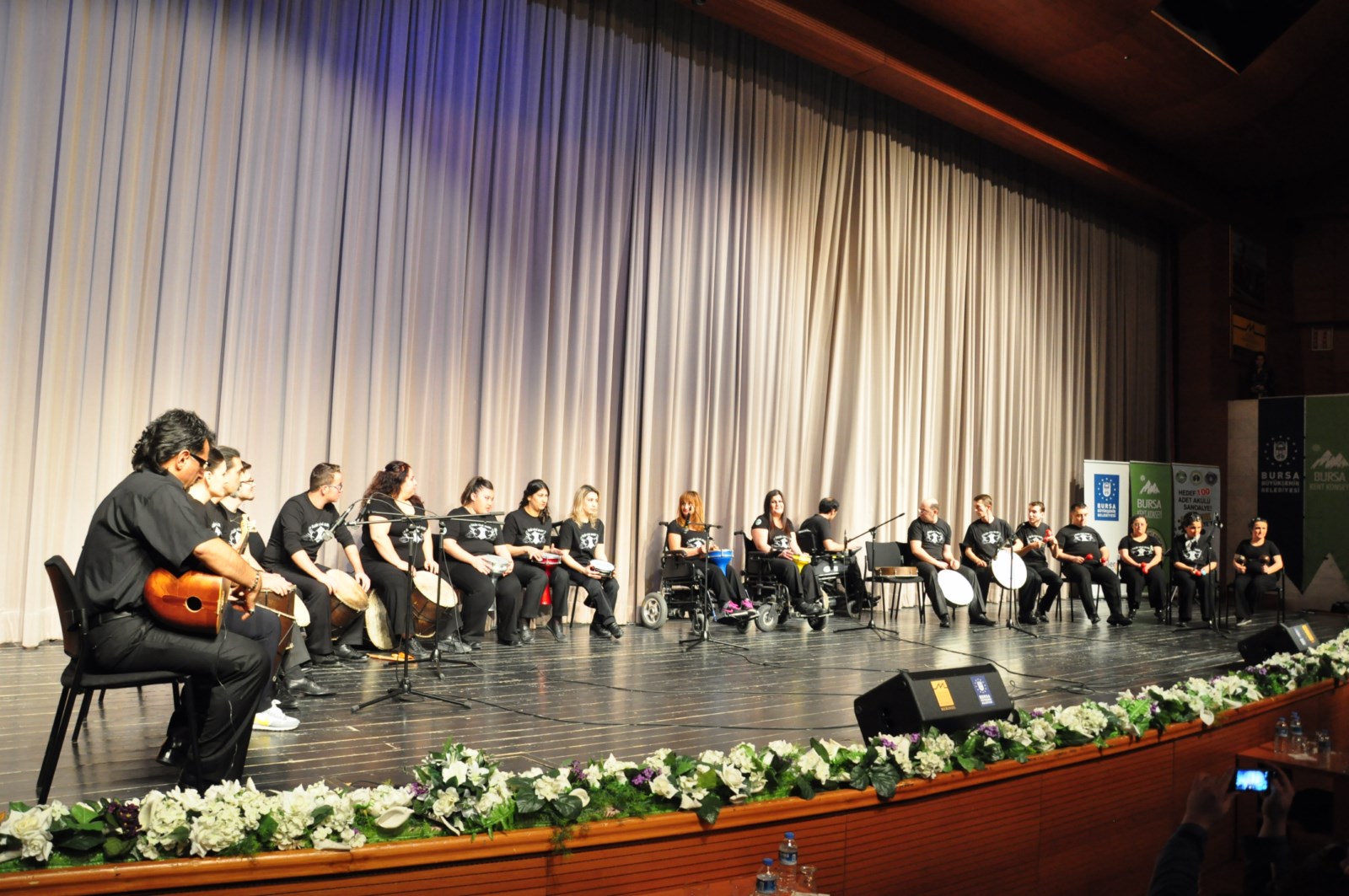 Atatürk Kongre Kültür Merkezi (Merinos AKKM) Orhangazi Salonu’ndaki programa, engelli bireylerin aileleri yoğun ilgi gösterdi. Gece, Engelliler Meclisi üyeleri tarafından oluşturulan ‘Kalbin Ritmi Grubu’nun sahne almasıyla başladı. Çeşitli çalgı aletlerini başarıyla çalan ekip, hareketli parçalarla dinleyenleri mest etti. Daha sonra dağ yöresi halk oyunları ekibi de yerel giysileriyle performans sergiledi. Dinleyiciler ise yöresel şarkılara yerlerinde oynayarak eşlik etti. Gecenin son bölümünde ise Engelliler Meclisi üyeleri tarafından oluşturulan Türk Halk Müziği Korosu, şef Kemal Kamalı önderliğinde sahneye çıktı. Büyükşehir Belediyesi Orkestra Şube Müdürlüğü sanatçılarının da enstrümanlarıyla eşlik ettiği konserde, farklı engelli gruplarındaki bireyler seslendirdiği solo ve koro şarkılarıyla dinleyenlerin beğenisini kazandı. Kimi zaman hareketli şarkılarla salonu eğlendiren engelliler, kimi zaman hüzünlü şarkılarla da katılanları duygulandırdı.