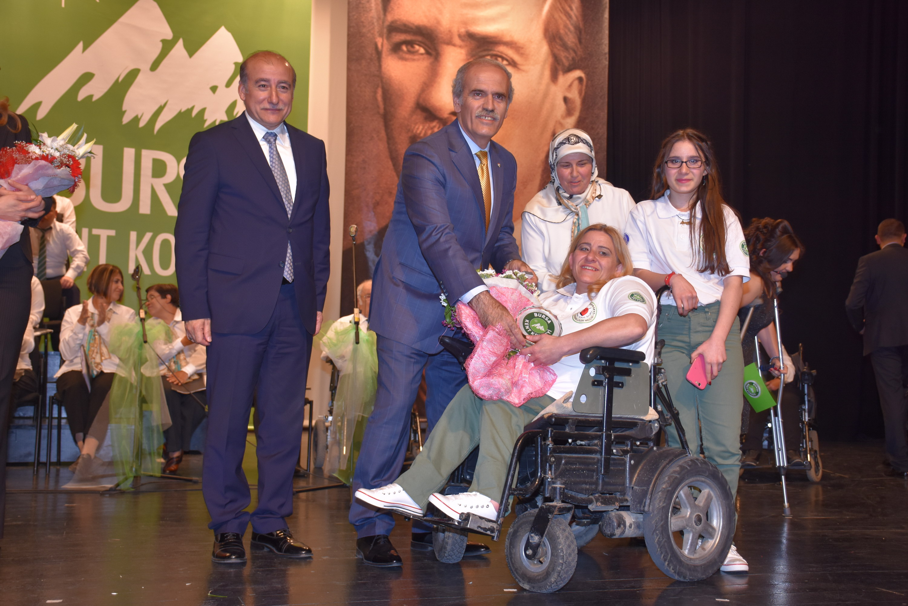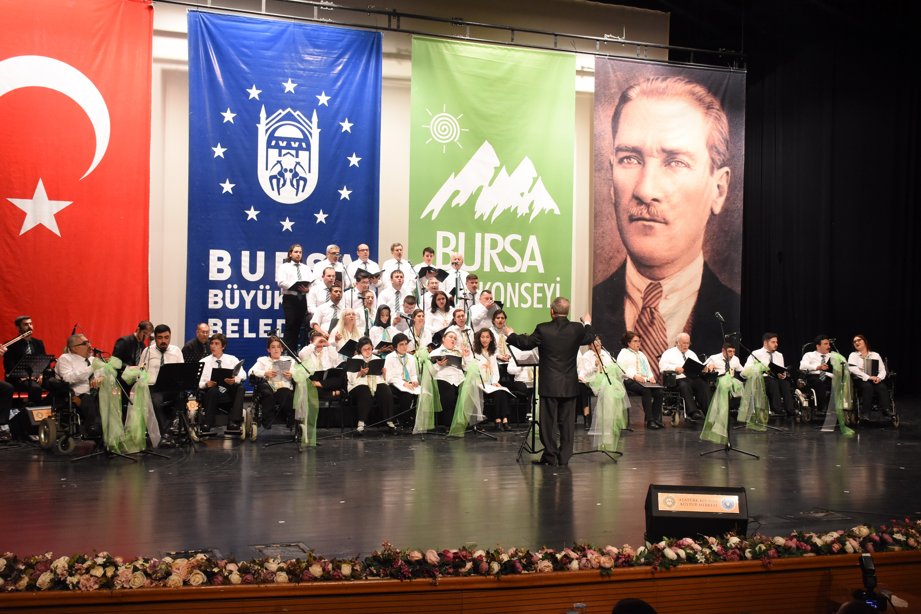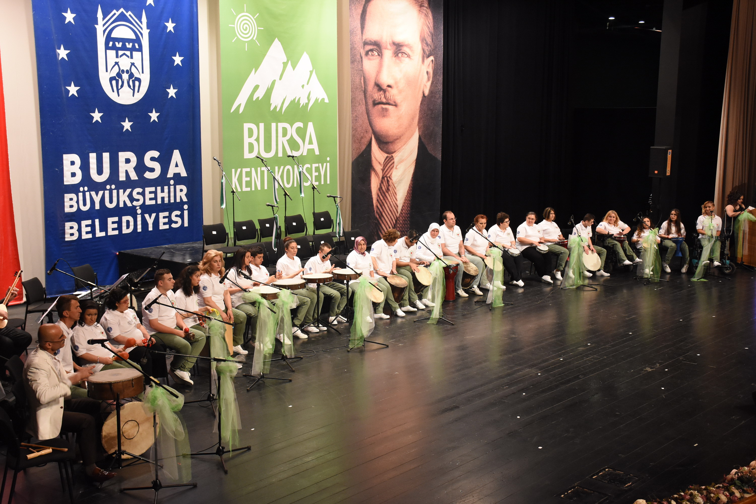 Bursa Kent Konseyi Engelliler Meclisi, Engelliler Haftası ve Anneler Günü münasebetiyle Atatürk Kongre Kültür Merkezi (Merinos AKKM) Orhangazi Salonu’nda yüzlerce kişinin katıldığı konser düzenledi. Konsere, Büyükşehir Belediye Başkanı Recep Altepe, Bursa Kent Konseyi Başkanı Hasan Çepni, Bursa Büyükşehir Belediyesi Yerel Gündem Şube Müdürü Mahmut Turunç, Bursa Kent Konseyi Genel Sekreteri Murat Başlar, Engelliler Meclisi Başkanı İbrahim Sönmez, Kadın Meclisi Başkanı Kadriye Sarıbıyık, Bursa Kent Konseyi yürütme kurulu üyeleri ve engelli bireylerle aileleri katıldı. Gece, saygı duruşu ve İstiklal Marşı’nın hem sesli hem de işaret diliyle okunmasıyla başladı. Konserde ilk olarak 6 yıldır faaliyet gösteren Eğitmen Cuma Çimen’in önderliğindeki Kalbin Ritmi Grubu özel gösterisiyle sahne aldı. Kullanabildikleri müzik aletleriyle ritim tutan 30 engelli birey, performanslarıyla dinleyenlerden büyük alkış aldı. Farklı farklı enstrümanları uyum içerisinde çalan bireyler, becerileriyle ailelerini gurur dolu bir akşam yaşattı.