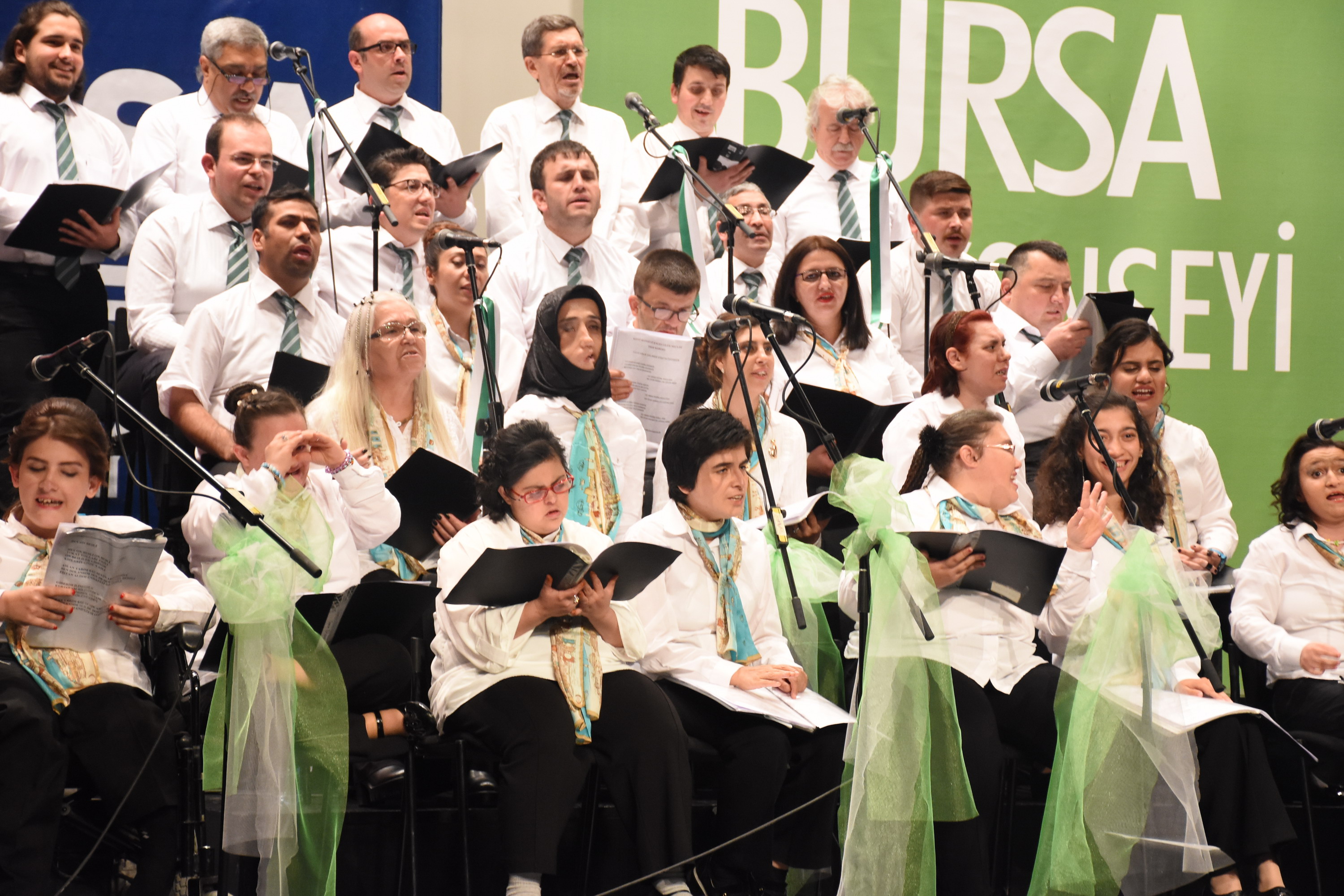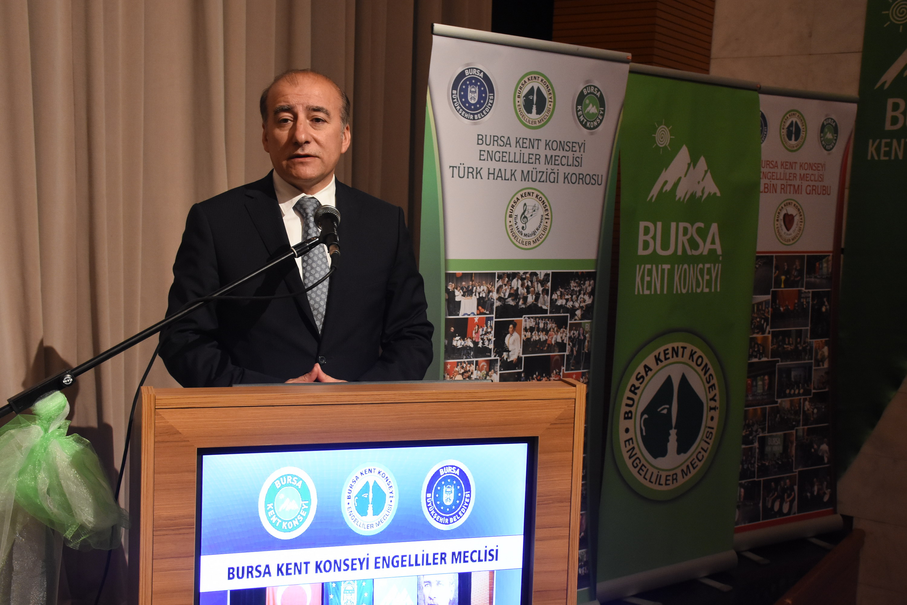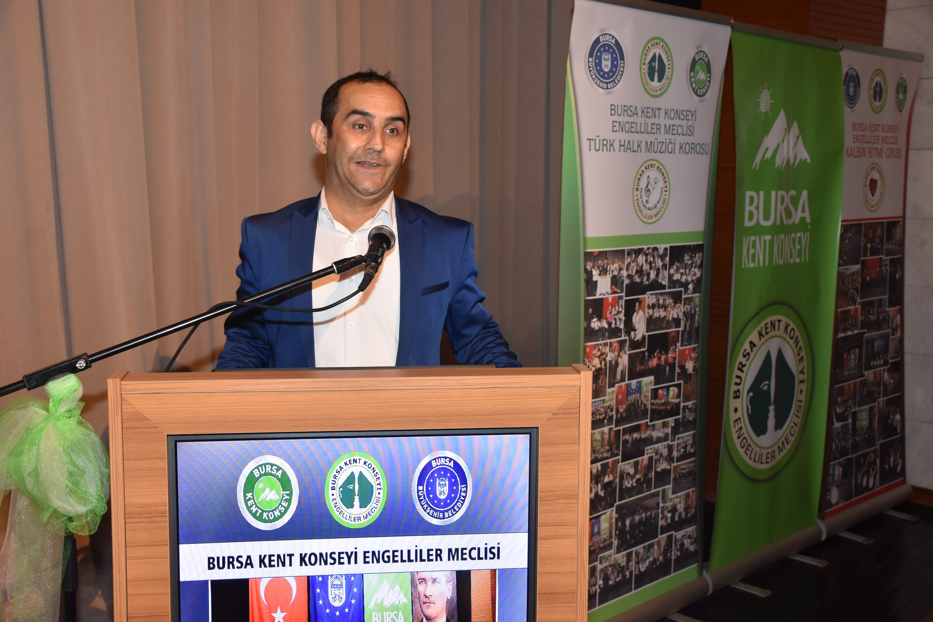 Bursa Kent Konseyi Engelliler Meclisi, Engelliler Haftası ve Anneler Günü münasebetiyle Atatürk Kongre Kültür Merkezi (Merinos AKKM) Orhangazi Salonu’nda yüzlerce kişinin katıldığı konser düzenledi. Konsere, Büyükşehir Belediye Başkanı Recep Altepe, Bursa Kent Konseyi Başkanı Hasan Çepni, Bursa Büyükşehir Belediyesi Yerel Gündem Şube Müdürü Mahmut Turunç, Bursa Kent Konseyi Genel Sekreteri Murat Başlar, Engelliler Meclisi Başkanı İbrahim Sönmez, Kadın Meclisi Başkanı Kadriye Sarıbıyık, Bursa Kent Konseyi yürütme kurulu üyeleri ve engelli bireylerle aileleri katıldı. Gece, saygı duruşu ve İstiklal Marşı’nın hem sesli hem de işaret diliyle okunmasıyla başladı. Konserde ilk olarak 6 yıldır faaliyet gösteren Eğitmen Cuma Çimen’in önderliğindeki Kalbin Ritmi Grubu özel gösterisiyle sahne aldı. Kullanabildikleri müzik aletleriyle ritim tutan 30 engelli birey, performanslarıyla dinleyenlerden büyük alkış aldı. Farklı farklı enstrümanları uyum içerisinde çalan bireyler, becerileriyle ailelerini gurur dolu bir akşam yaşattı.