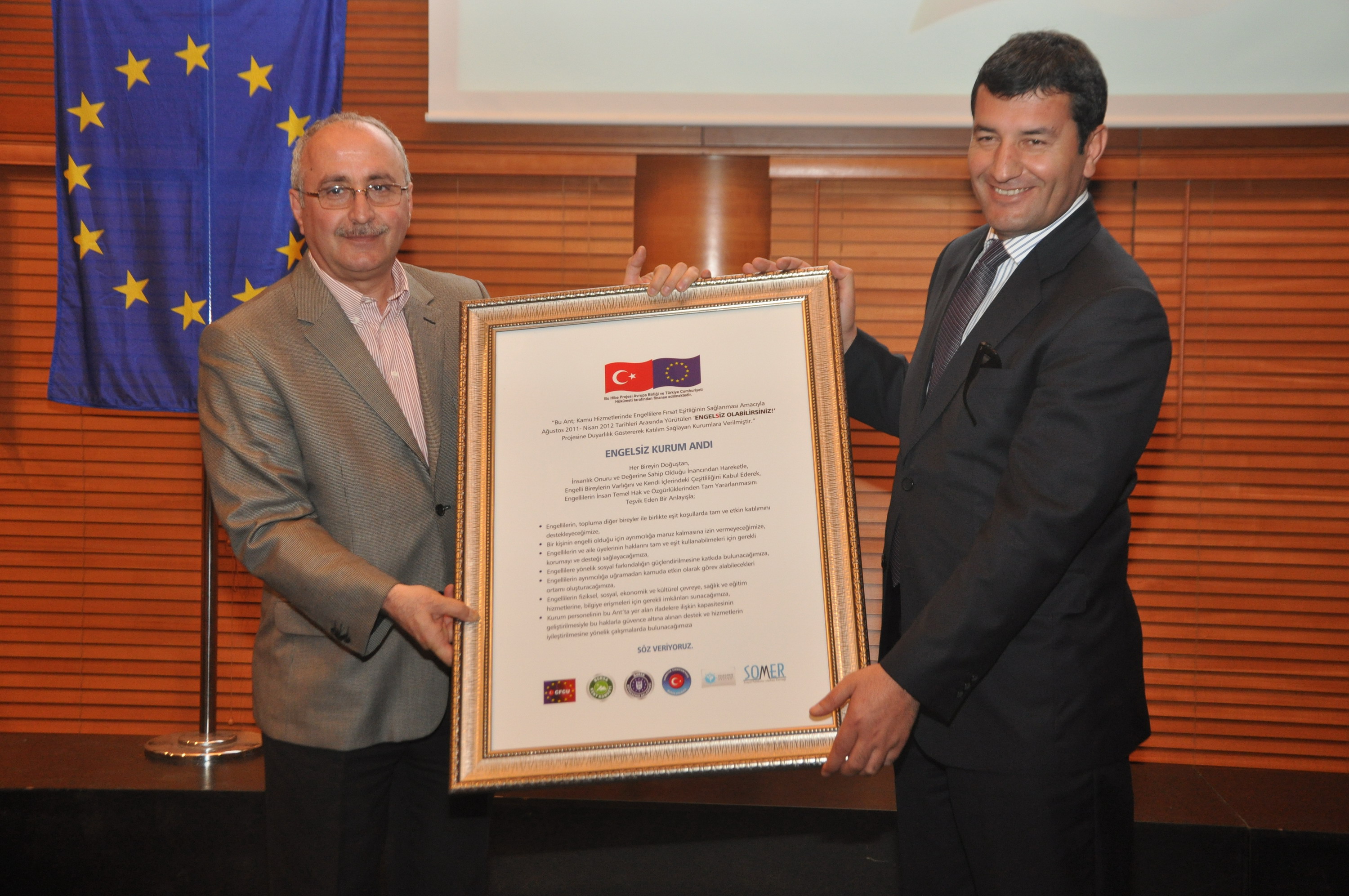 Konuşmaların ardından Bursa Kent Konseyi Başkanı Mehmet Semih Pala tarafından engellilere duyarlılık gösteren Aile ve Sosyal Politikalar İl Müdürlüğü, Yenişehir Havaalanı, Nilüfer Belediyesi, İl Tarım Müdürlüğü, İl Milli Eğitim Müdürlüğü ve Bursa Defterdarlığı’na ‘Engelsiz Kurum Andı’nı içeren tablo hediye edildi. Programın sonunda ‘engellilere yönelik sorunlar ve çözüm yolları’ konulu panele geçildi.