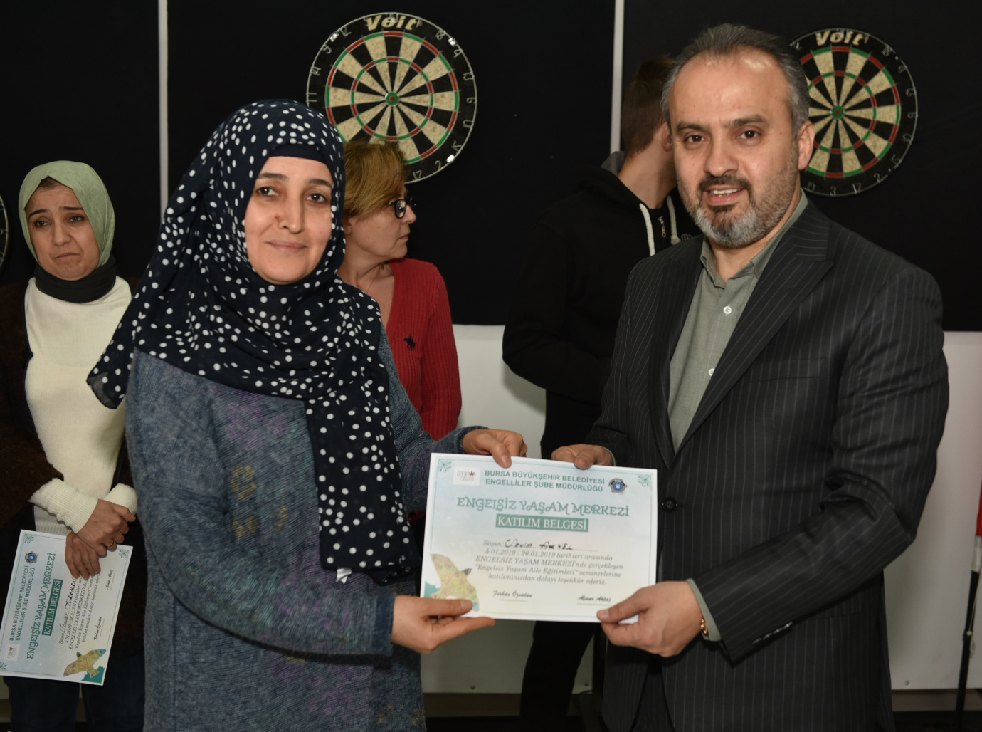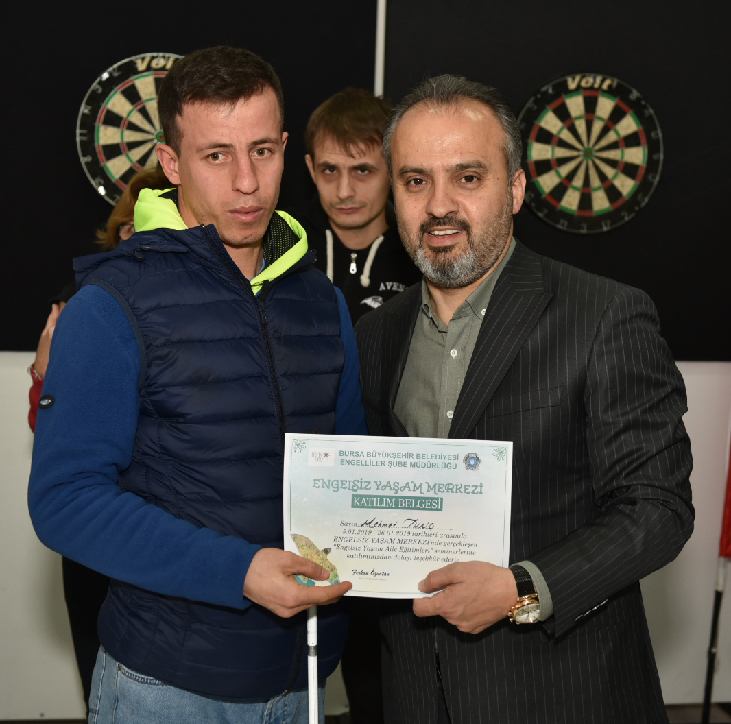 Bursa’da yaklaşık 1 aydır devam eden ‘Engelsiz Yaşam Merkezi Aile Eğitimleri’, sertifika töreniyle sona erdi. Engelli bireylerin ve ailelerinin yaşamlarına ışık tutan eğitimlerin sertifikalarını, Bursa Büyükşehir Belediye Başkanı Alinur Aktaş verdi. Başkan Aktaş, eğitimin önemine değindiği açıklamasında, “Aile, gerek birey gerekse toplum için en temel unsurdur. Ailenin toplum içerisindeki temel işlevlerini yerine getirmesi açısından yaşadığı pek çok sıkıntıya rağmen temelde değişmeyen tek şey; ailenin çocuğun hayatının merkezinde olduğu, olumlu ya da olumsuz olayların çocuğun hayatına yön verdiği gerçeğidir” dedi.