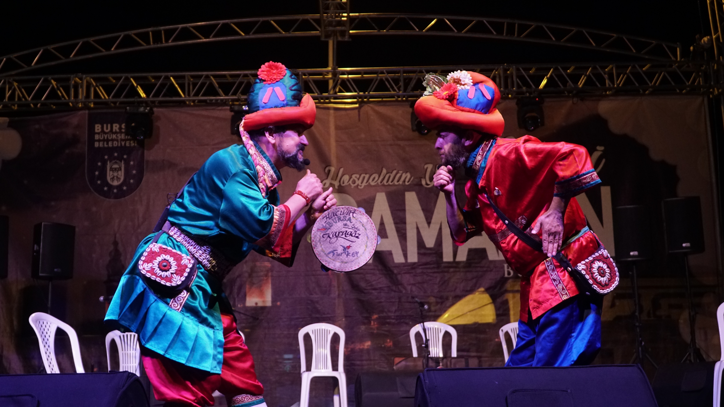 Bursa Büyükşehir Belediyesi Kültür Turizm Dairesi Başkanlığı ve Kültür A.Ş. tarafından düzenlenen ‘Şehr-i Ramazan’ etkinlikleri, Ramazan’ın huzurunu vatandaşlara doyasıya hissettirdi. Merinos Parkı’nda gök kubbeli açık namazgâhta, Bursa İsmail Hakkı Kuran Kursu Öğreticisi Ayhan Polat’ın kıldırdığı teravih namazının ardından vatandaşlar, canlı ‘Karagöz ve Hacivat’ gösterisini keyifle izledi. Gecede tasavvuf sanatçılarının konuk olduğu ‘Gönül Sohbetleri’ programına ise usta sanatçı Münib Engin Noyan konuk oldu. Noyan, vatandaşlarla Ramazan ayı ve oruç ibadeti odağında huzur dolu bir sohbet gerçekleştirdi. Bursalılar, merak ettikleri konularda Noyan’a sorular sorarak aydınlatıcı bilgiler de aldı. Keyifli sohbet huzurlu anlara imzasını attı.