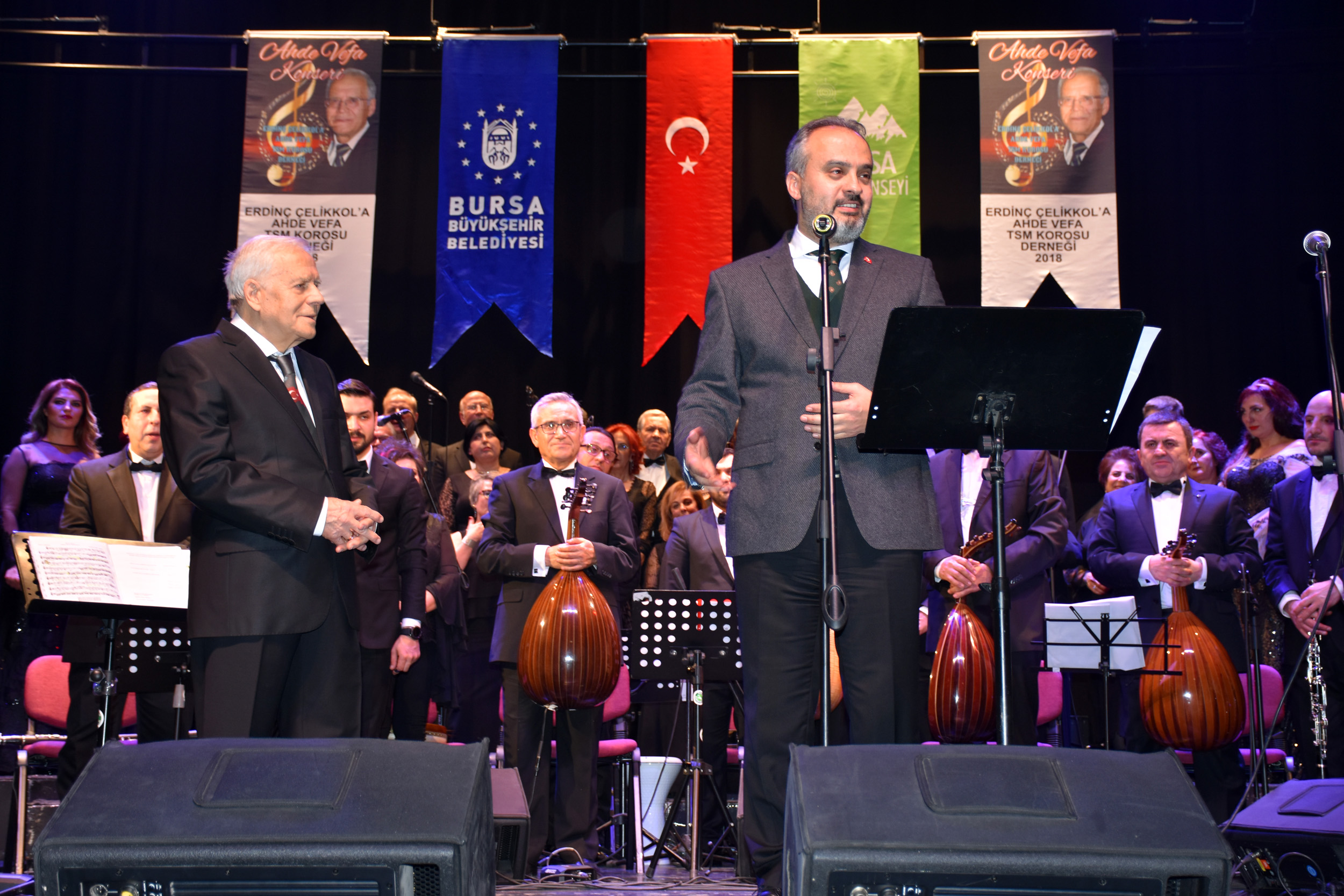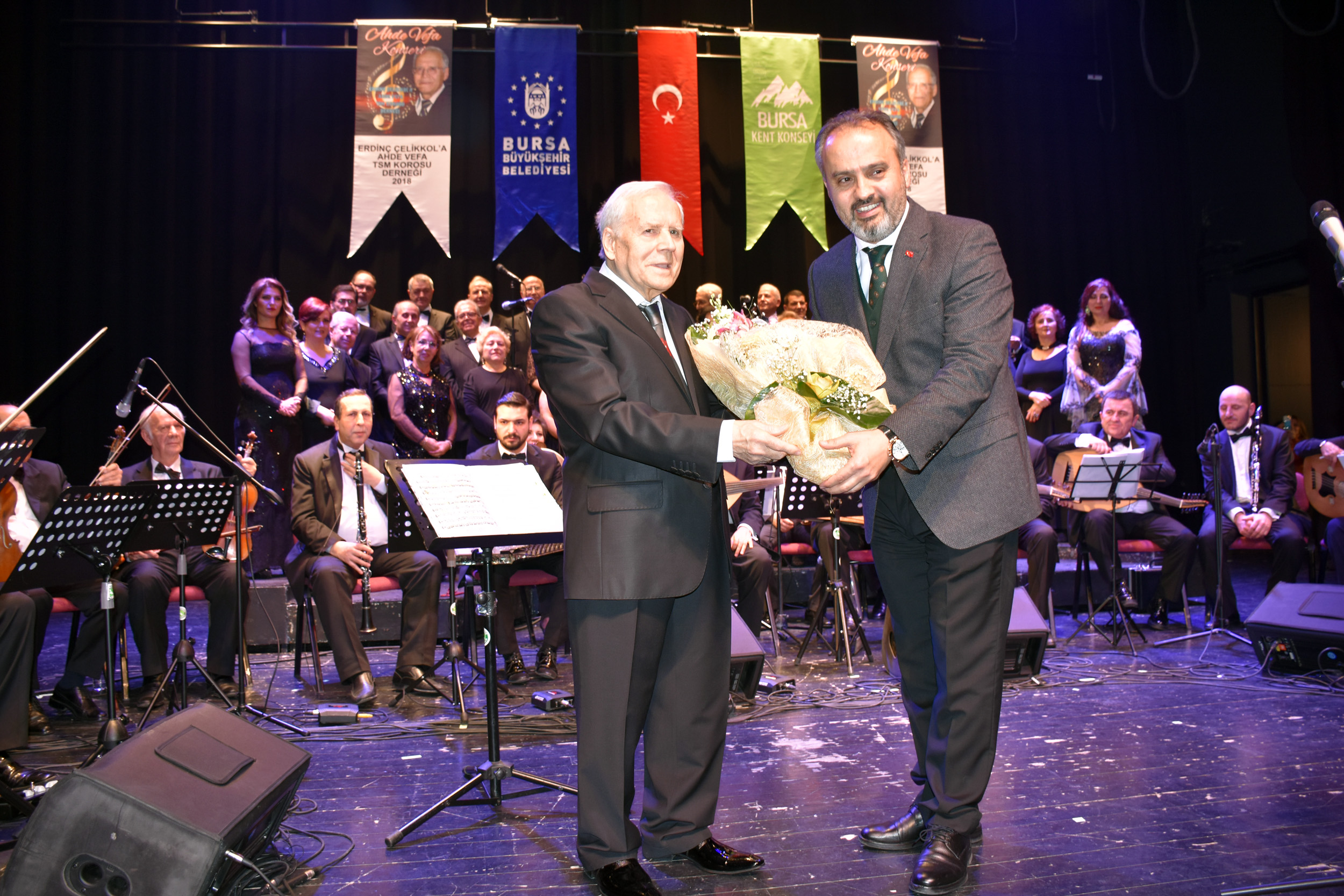 Bursa Büyükşehir Belediye Başkanı Alinur Aktaş ve usta isim Erdinç Çelikkol, sahnede ‘Eski Dostlar’ şarkısını beraber seslendirdi. Programın sonunda Başkan Aktaş tarafından Çelikkol’a gecenin anısına çiçek takdim edildi.