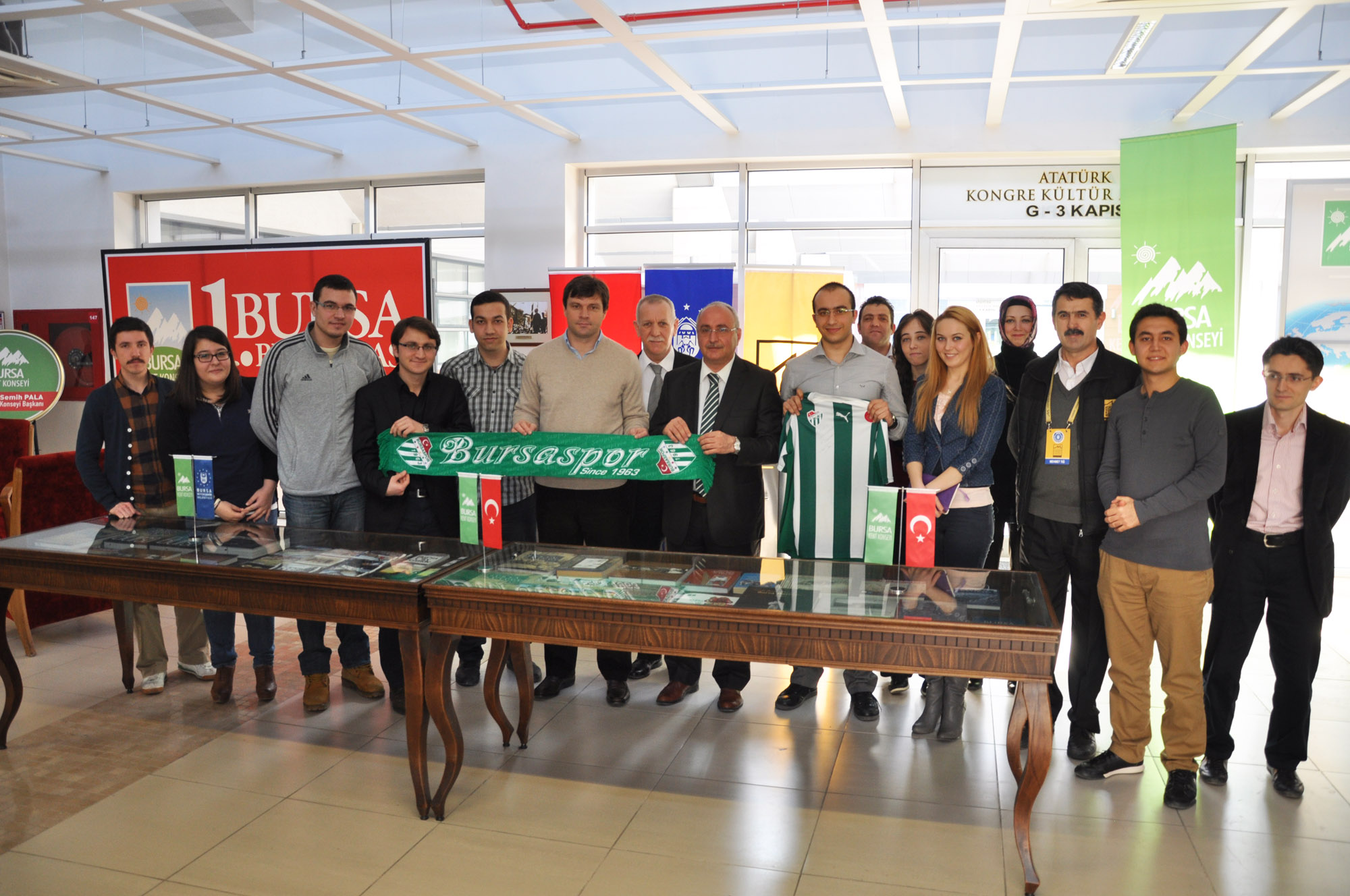 Ziyaretin ardından Bursa Kent Konseyi Gençlik Meclisi üyeleri, Ertuğrul Sağlam’la hatıra fotoğrafı çektirdi. Sağlam, günün anısına gençlerin atkı ve formlarını da imzaladı.