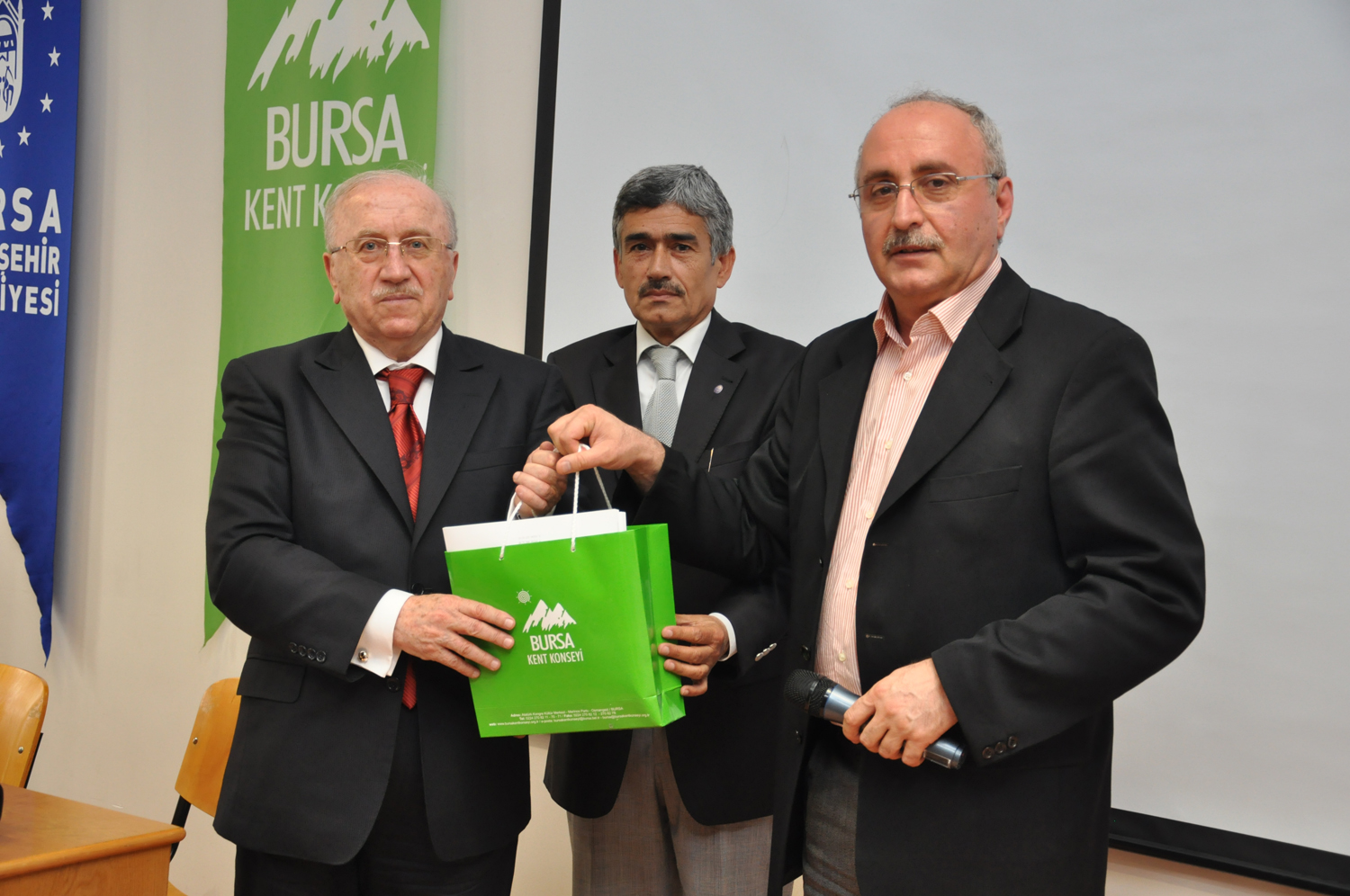 Söyleşinin ardından Bursa Kent Konseyi Başkanı Semih Pala ve Çekirge Çalışma Grubu Temsilcisi Necati Şahin, Diyanet İşleri Başkanlığı Emekli Başkan Yardımcısı Sami Uslu´ya Bursa Kent Konseyi´nin çalışmalarını anlatan kitap seti ve plaket verdi.