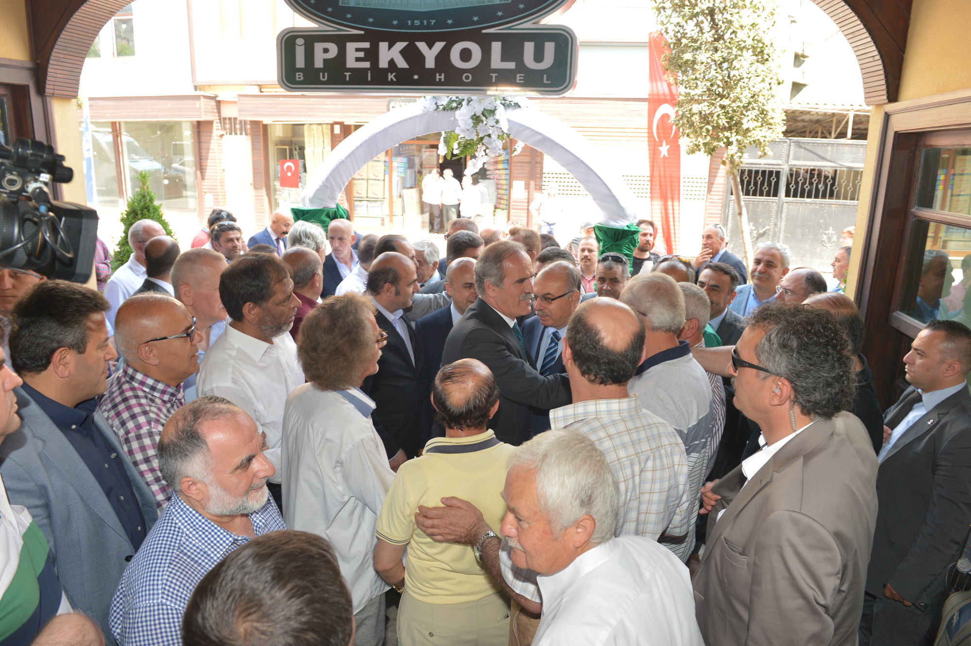 Bursa Tarihi Çarşı ve Hanlar Birliği adına konuşan Rıdvan Çiçek ise bölgeye katkıları nedeniyle Başkan Altepe’ye teşekkür etti. Konuşmaların ardından Başkan Altepe, Sağlık Bakanı Müezzinoğlu ve Vali Karaloğlu ile Bursa milletvekilleri İsmet Su ve Hüseyin Şahin’in yanı sıra Osmangazi Belediye Başkanı Mustafa Dündar ve Fatih Belediye Başkanı Mustafa Demir ve AK Parti İl Başkanı Cemalettin Torun, Büyükşehir Belediyesi bürokratları ve protokol üyeleriyle birlikte kurdele keserek Eskişehir Han’ın açılışını yaptı, ardından hanın avlusunu ve butik oteli gezdi.