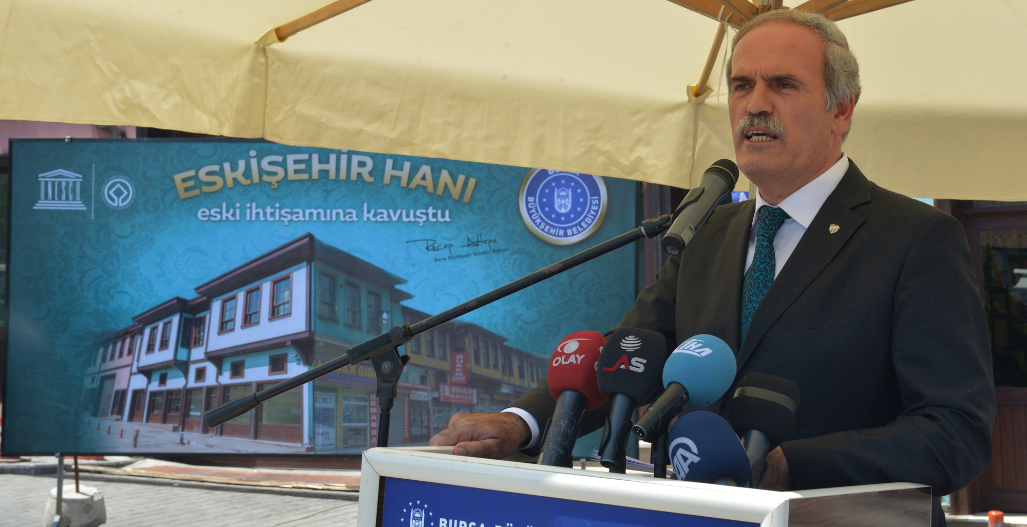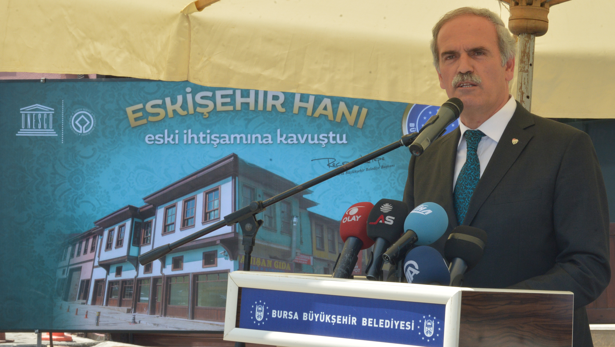- Başkan Altepe, “Tarihi ipek yolu üzerinde bulunan Eskişehir Han, aslına uygun olarak yeniden Bursa’ya kazandırıldı” dedi.