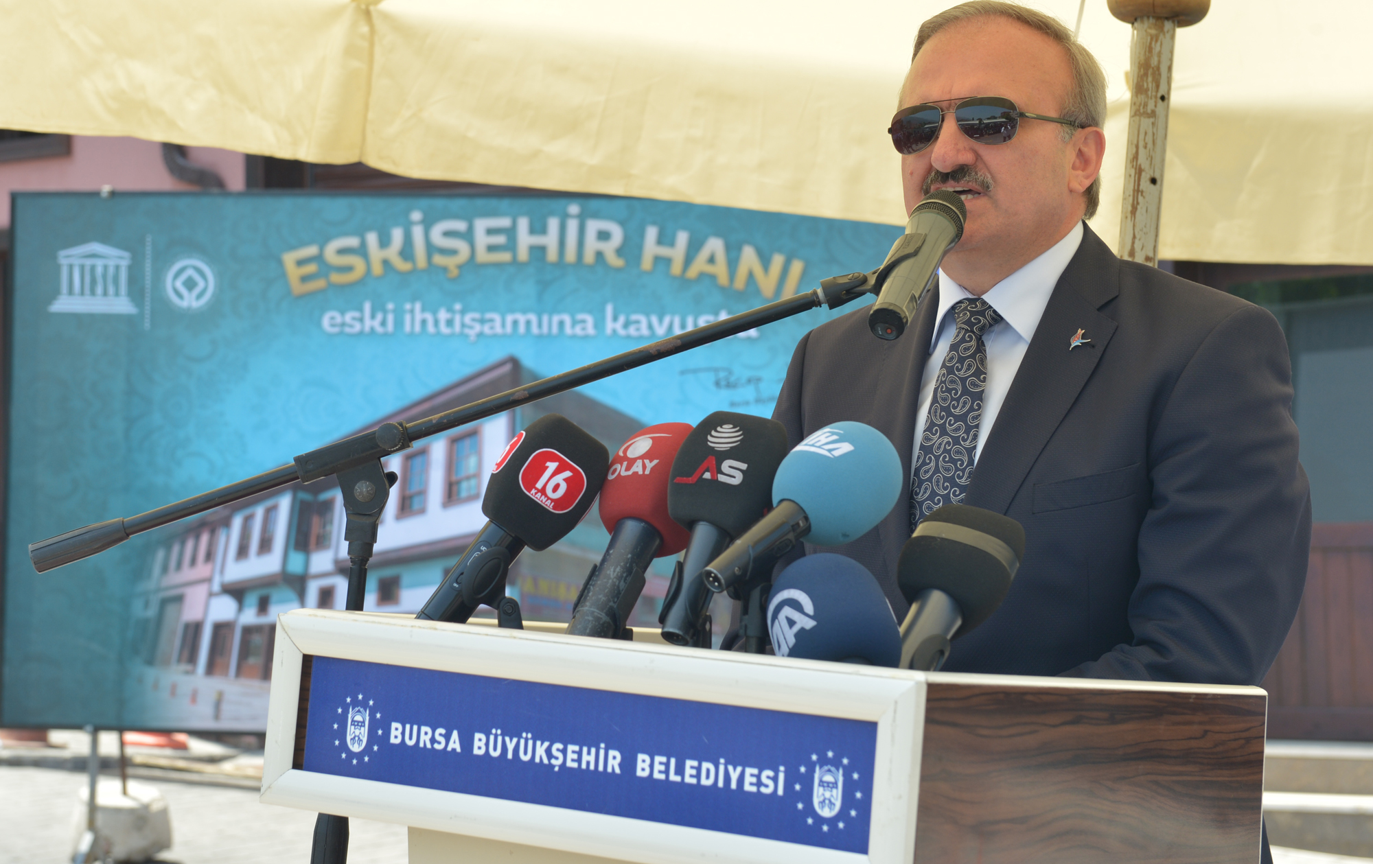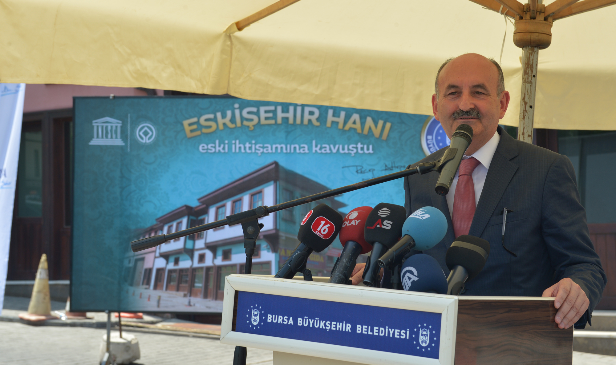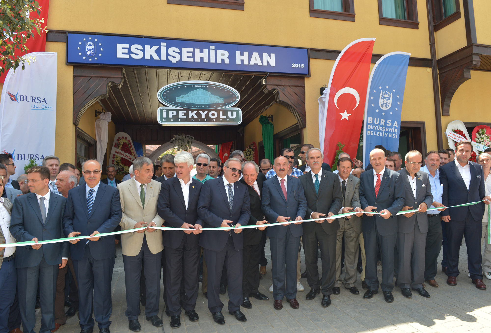 - Bursa’ya restore edilen eserlerle değer katan Büyükşehir Belediyesi’nin Kayhan Bölgesi’nde yeniden özgün kimliğine kavuşturduğu ve 19 Mayıs Atatürk’ü Anma ve Gençlik ve Spor Bayramı’nda yeni yüzüyle konuklarını ağırlayan Eskişehir Han’ın açılışına; Sağlık Bakanı Mehmet Müezzinoğlu ve Bursa Valisi Münir Karaloğlu da katıldı.