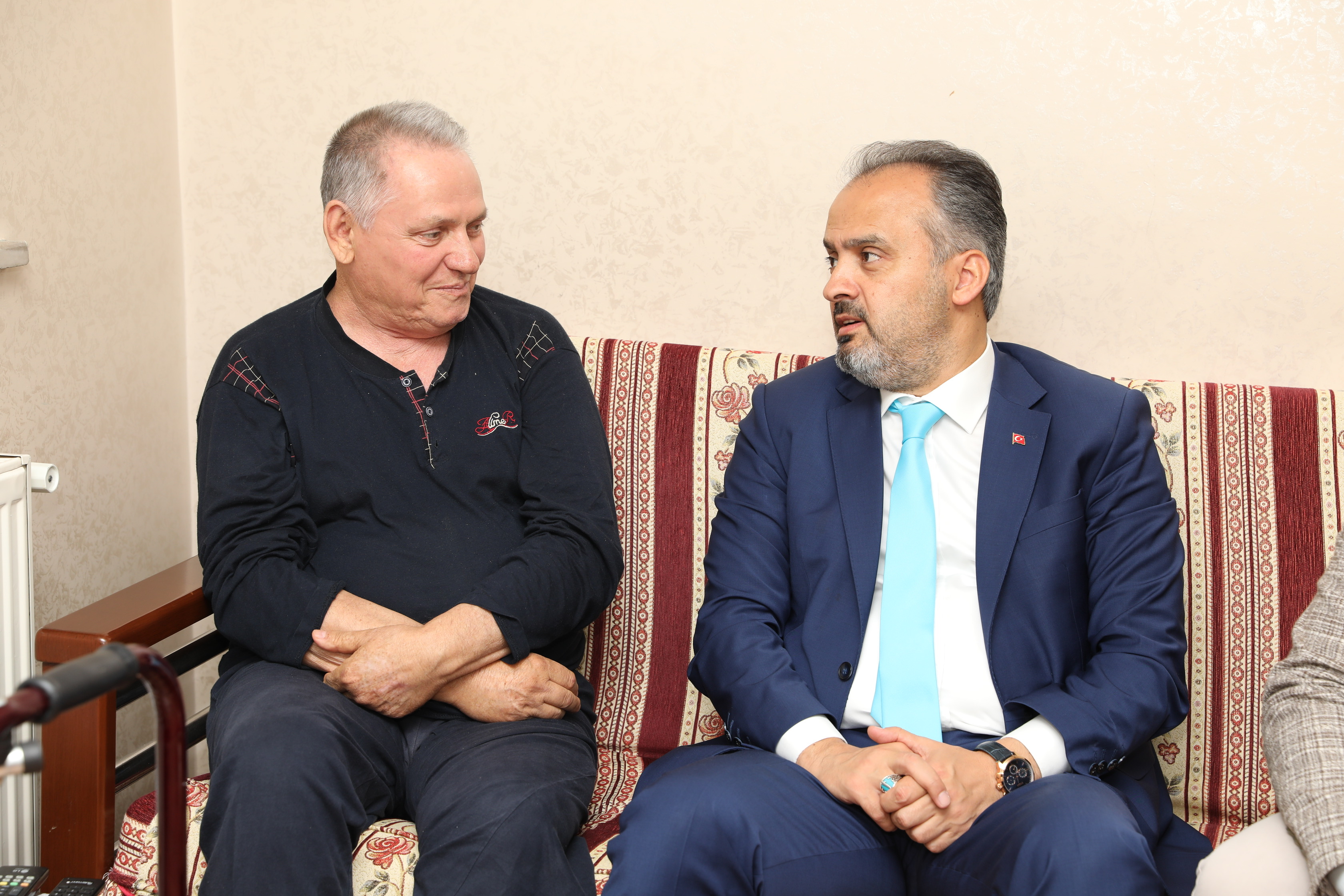 Bursa Büyükşehir Belediye Başkanı Alinur Aktaş, 2018 yılından bu yana evde hasta bakım desteği alan Galip Bayrak’ı evinde ziyaret ederek, “Geçmiş olsun” dedi. Bayrak ile sohbet eden ve sağlık durumuyla ilgili bilgiler alan Başkan Aktaş, “Galip abi, 68 yaşında, emekli, demans hastası. Şeker hastalığından dolayı da sol ayakta bir kesik söz konusu. Bir taraftan hastalıkla mücadele ederken, bir taraftan da yaşam mücadelesini devam ettiriyor” dedi.