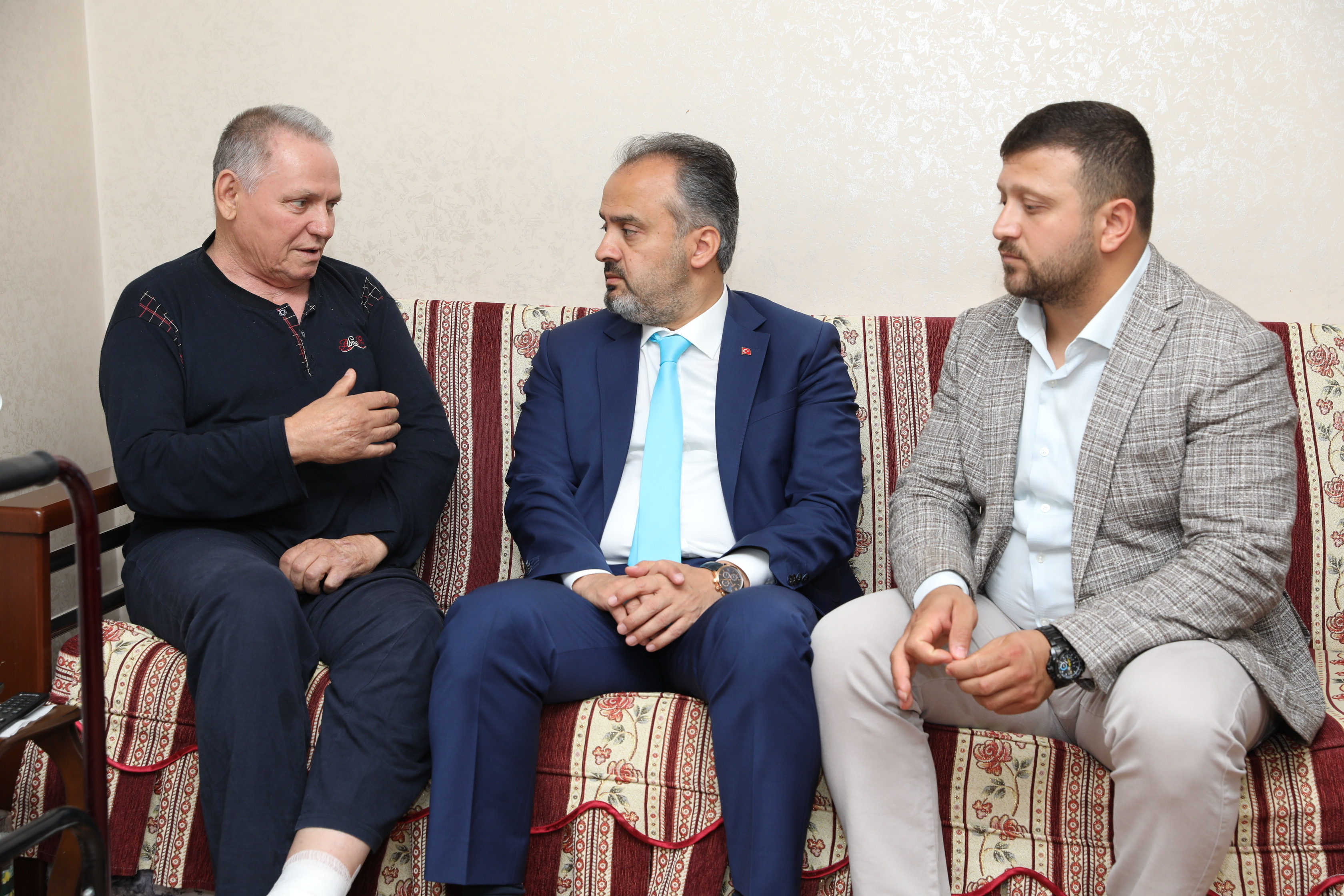 BURSA – Bursa Büyükşehir Belediye Başkanı Alinur Aktaş, Büyükşehir Belediyesi’nin ‘Evde Hasta Bakım ve Hasta Nakil Hizmetleri Birimi’nden hizmet alan 68 yaşındaki Galip Bayrak’ı evinde ziyaret etti. Bayrak’a moral olan Başkan Aktaş, Büyükşehir Belediyesi olarak, hastaların hayatını kolaylaştırmak adına gayretle çalıştıklarını söyledi.