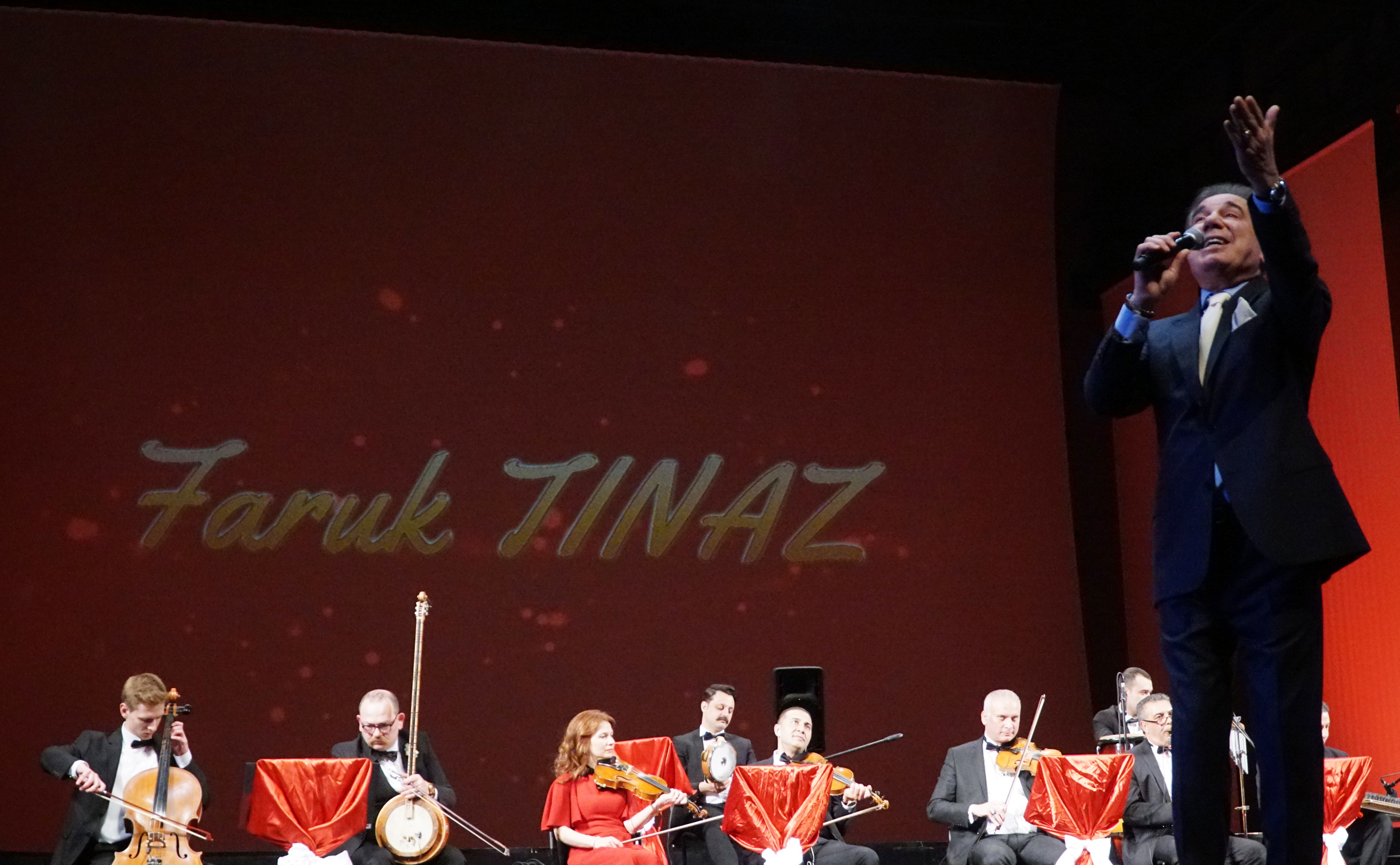 Keyifli programın onur konuğu ise müziğin güçlü sesi usta sanatçı Faruk Tınaz’dı. Bursa’da, sanat müziği gönüllüsü sevenlerine konser vermenin mutluluğunu yaşadığını belirten Tınaz, birbirinden güzel eserleri hayranları için seslendirdi. Sevenleri de usta sanatçıyı alkışlarla ödüllendirdi. Keyifli konseri ilgiyle izleyen Bursa Büyükşehir Belediyesi Orkestra Şube Müdürü Turgay Mercan, konserin sonunda usta sanatçıyı tebrik ederek çiçek verdi.