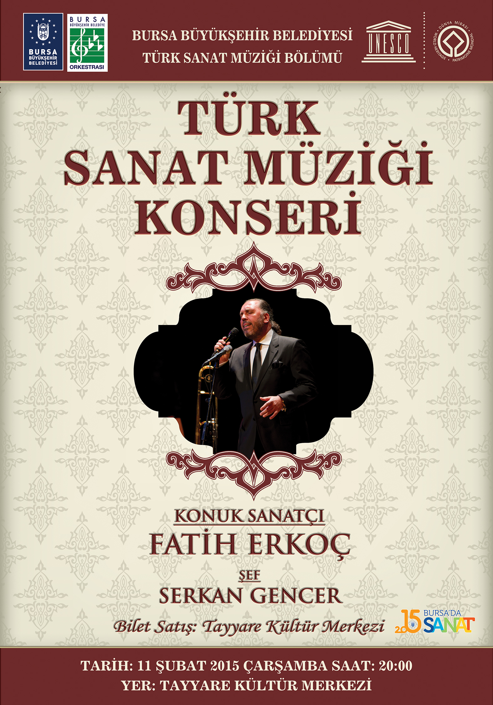 - Büyükşehir Belediyesi Orkestrası Türk Sanat Müziği Bölümü, ünlü sanatçı Fatih Erkoç’u Bursalı sanatseverlerle buluşturuyor.