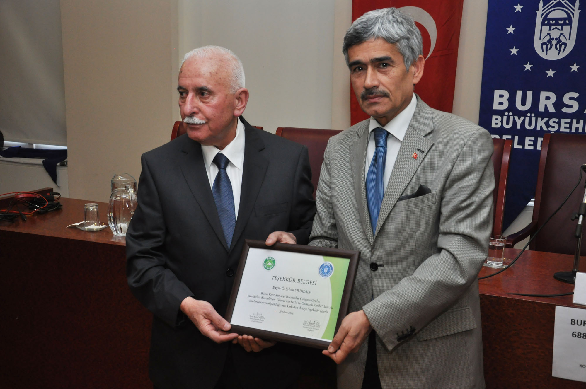 Konferansa konuşmacı olarak katılan Tarihçi ve Yazar Erhan Yıldızalp, 06 Nisan 1326 tarihinde Bursa’nın Orhangazi tarafından fetih edildiğini ve Türk yurdu yapıldığını söyledi. Bizans tekfurunun o gün sarayı terk ederek Orhangazi’nin tayin ettiği koruma birliğinin himayesinde Gemlik’e götürülüp İstanbul’a gitmesi için gemiye bindirildiğini anlatan Yıldızlap, Orhangazi’nin bugün Bey Sarayı olarak adlandırılan Tekfur Sarayı’na yerleştiğini belirtti. Orhangazi’nin ilk iş olarak savaş meclisini topladığını vurgulayan Yıldızalp, “Sultan ilk iş olarak aşiret zamanından beri önemli işlerde karar alınması için görev yapan savaş meclisini sarayda topladı ve yapılması gereken işlerin müzakeresine geçildi. Gündemde 8 maddede sıralanmış konular vardı. Bu konular tek tek görüşülüp müzakere edildi ve kararlar alındı. Bursa’nın başkent yapıldığı ferman ile Osmanlı topraklarında yaşayanlarla diğer ülke devlet başkanlarına bildirildi. Bursa’nın Türkleştirilmesi için diğer şehirlerden, Anadolu’nun muhtelif yerlerinden Türkler getirildi. Vezir-i azamlığa Hacı Kemalettin oğlu Alaaddin Paşa tayin edildi. Devletin bayrağı tespit edildi. Darphane kurulmasına geçildi ve bir yıl sonra para basıldı. Düzenli ordu kuruldu. Bursa Kalesi içinde devlet teşkilatı için binalar yapıldı ve şehrin geliştirilmesi çalışmalarına başlandı” dedi.;