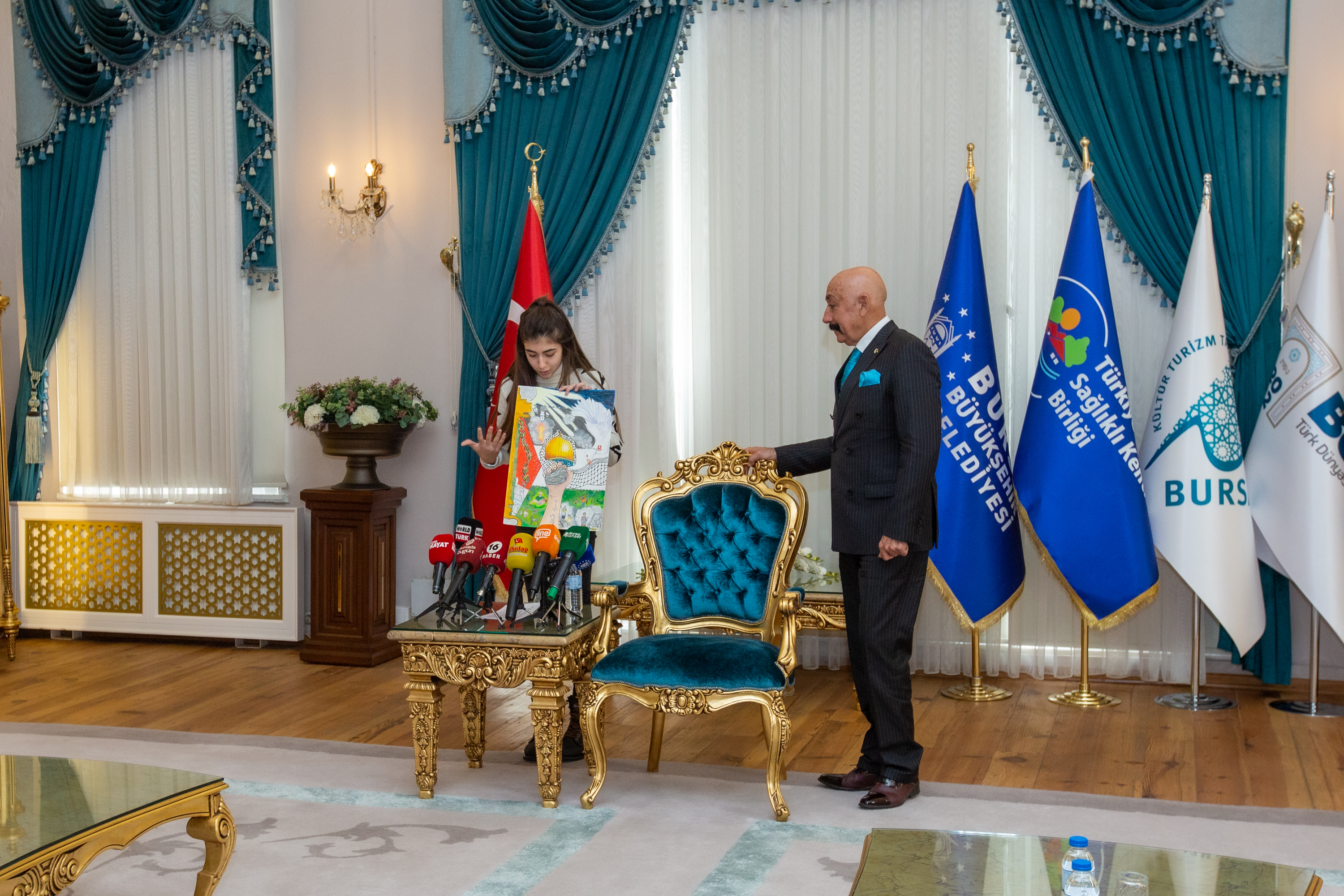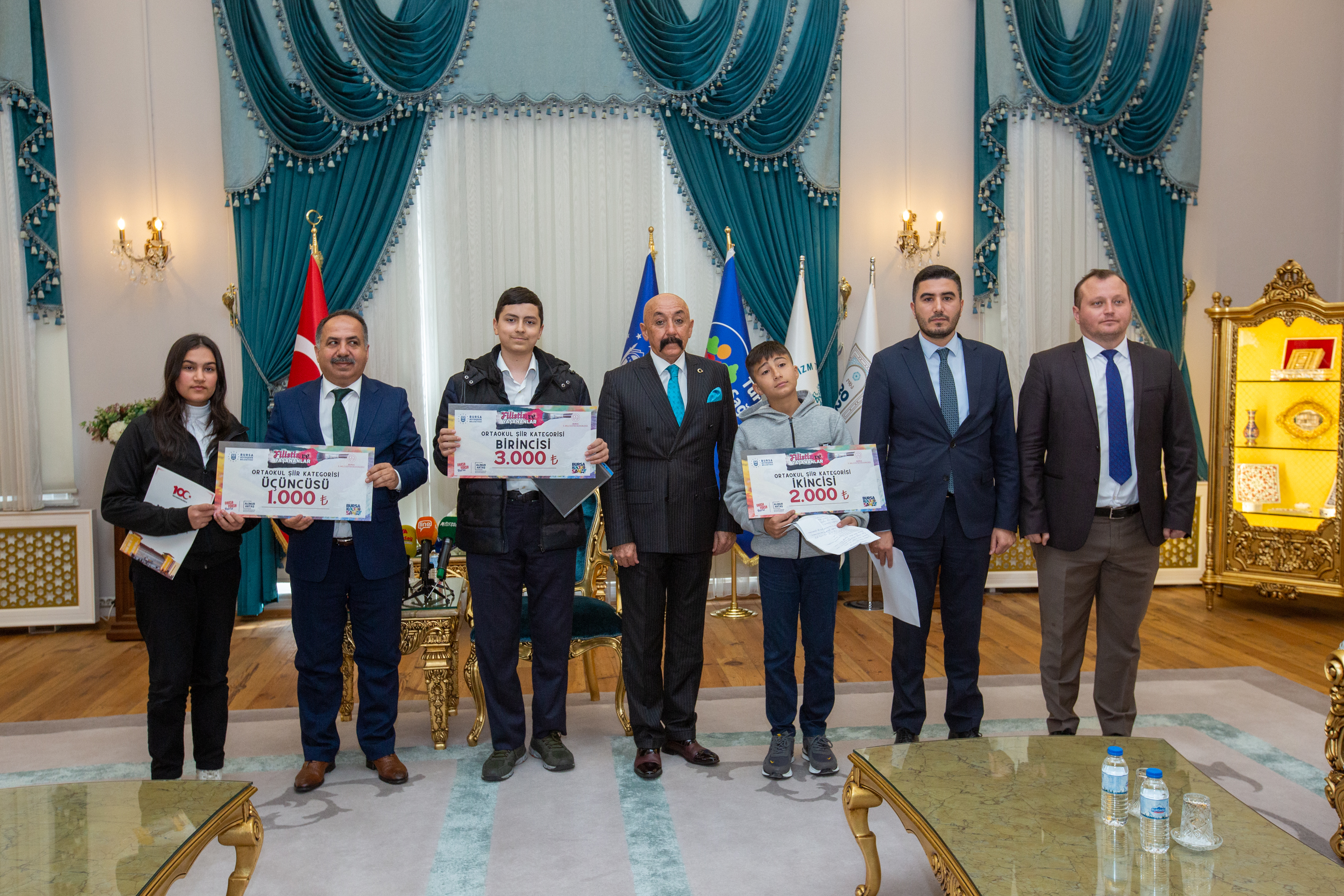 İsrail’in dünyanın gözü önünde savaş suçlarına her geçen gün yenilerini ekleyerek yaptığı soykırım devam ederken, Bursa Büyükşehir Belediyesi’nin yaşanan bu vahşete dikkat çekmek için 6 Kasım’da başlattığı okullar arası resim ve şiir yarışmasında dereceye girenler ödüllendirildi. Orta okul ve lise öğrencilerinin yarıştığı 4 farklı kategoride düzenlenen yarışmada dereceye giren öğrenciler ödüllerini Büyükşehir Belediyesi Başkanvekili Fethi Yıldız’ın elinde aldı.
