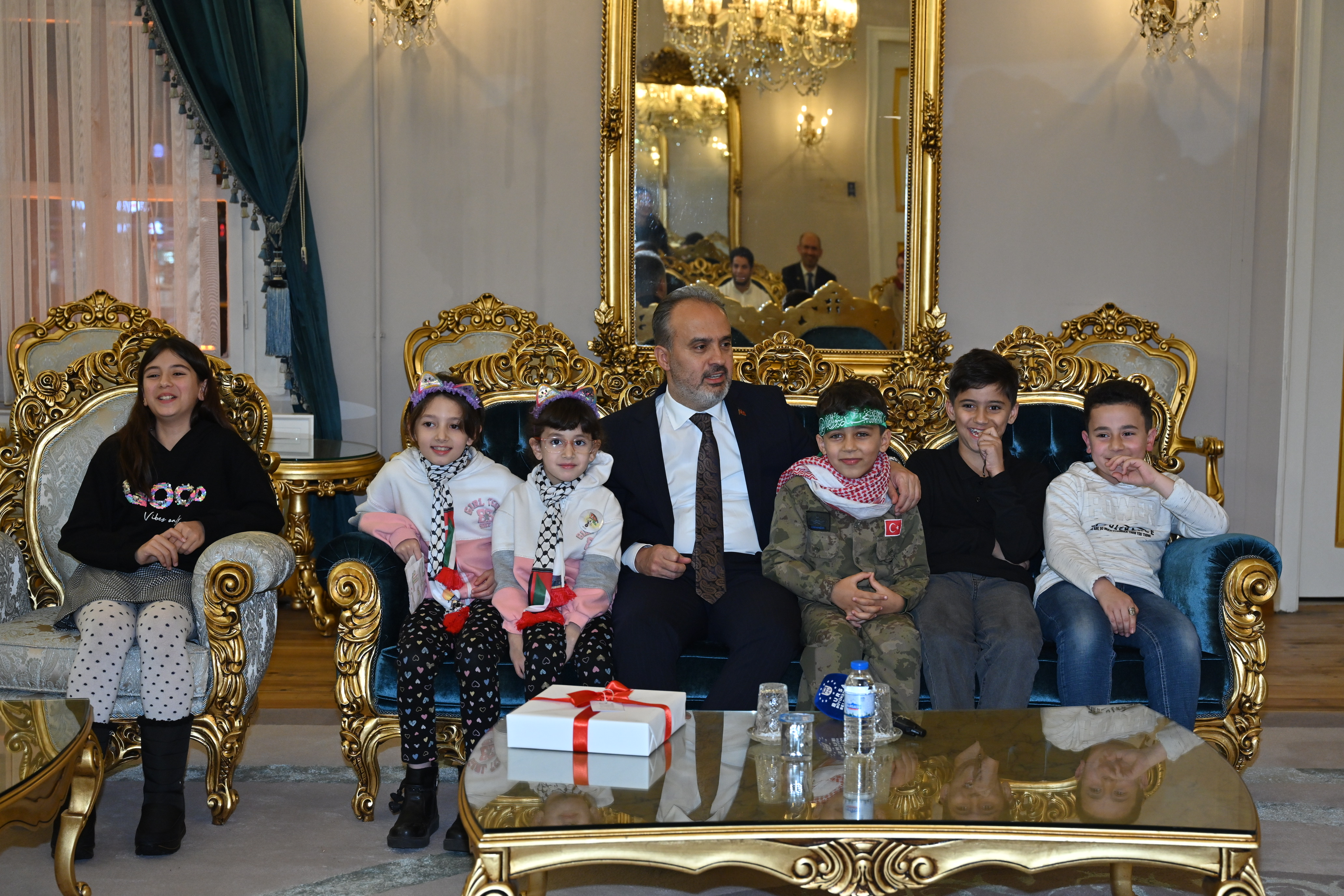 BURSA – İsrail’in 60 gündür bombalayarak soykırım suçu işlediği Gazze Şeridi’ndeki gelişmeleri, kilometrelerce öteden korku ve endişeyle takip eden Bursa’daki Filistinli çocuklar, Bursa Büyükşehir Belediye Başkanı Alinur Aktaş’ı ziyaret ederek desteklerinden dolayı teşekkür etti.
