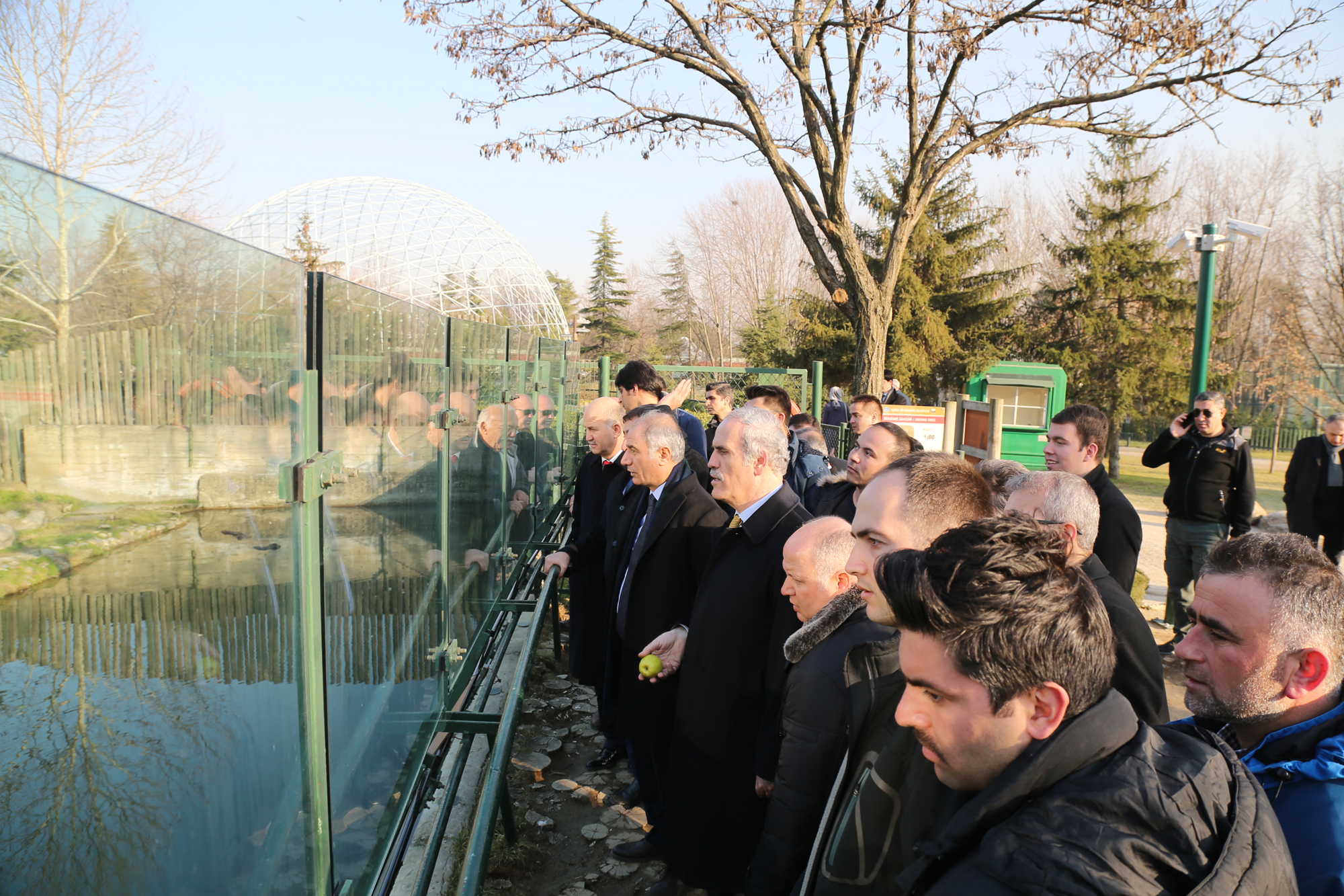Bu arada Yunuseli Havaalanı’nın açılış töreni için geldiği Bursa’da yoğun programı arasında Hayvanat Bahçesi’ni gezen İçişleri eski Bakanı Efkan Ala, doğal ortamda stres attı. Başkan Altepe, İçişleri eski Bakanı Efkan Ala, Vali İzzettin Küçük ve AK Parti İl Başkanı Cemalettin Torun, önce merkit barınağına girip merkitleri besledi. Daha sonra elleriyle zürafaları besleyen protokol üyeleri, ayılara da meyve attı.