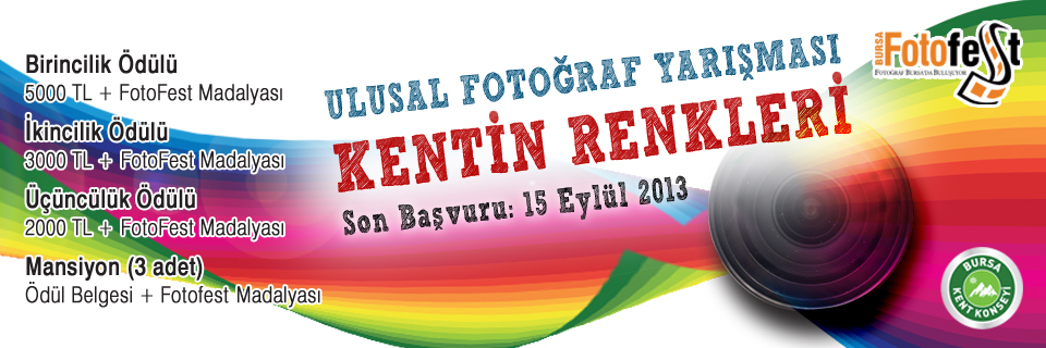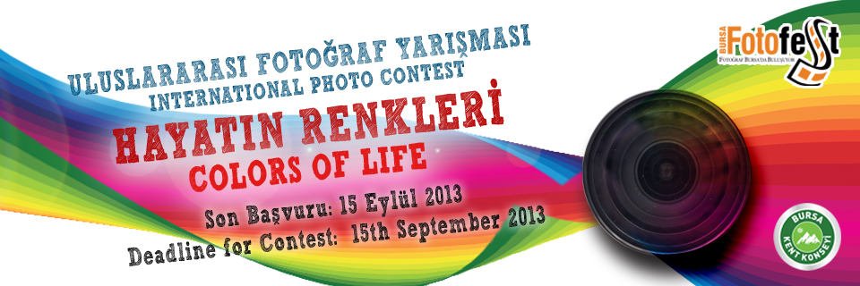 - Bu yıl üçüncüsü düzenlenecek olan Uluslararası Bursa Fotoğraf Festivali’nin (Fotofest) ‘Hayatın Renkleri’ ve ‘Kentin Renkleri’ temalı fotoğraf yarışmaları için başvurular başladı.