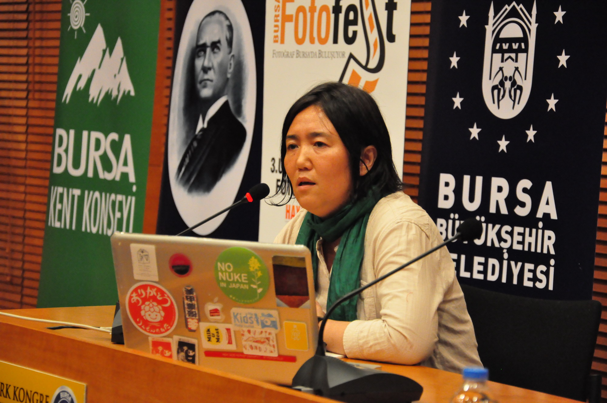 Fotoğraf editörü Yumi Goto ise, Bursa’da bulunduğu için mutlu olduğunu ifade etti. Sosyal medyada en çok Facebook’u kullandığını anlatan Goto, çalıştığı kitap firmasının uluslararası fotoğraf sanatçılarıyla iletişime geçip çalışmasını istemesi üzerine Facebook’tan yararlandığını aktardı. O zaman birçok fotoğrafçının Facebook’u kullandığını farkettiğini dile getiren Goto, sosyal medyanın fotoğrafçıları bir araya getiren büyük merkez haline geldiğini ifade etti. İşlerini bu sistem üzerinden yürüttüğünü, konularla ilgilenen birçok insanla tanıştığını söyleyen Goto, “Facebook, kişisel hedeflerimi de tamamlıyor. Facebook üzerinden iş alan birçok arkadaşım var. Bu tarz kullanabilir ve imkanlar oluşturabilirsiniz. Sosyal medya üzerinden bende bazı sergiler ve festivaller için teklifler alıyorum. Hatta yeni yetenekler de keşfediyorum. Dezavantajı ise fotoğrafınızı Facebook’ta yayınladığınızda herkes onları alabilir ve istediği şekilde kullanabilir. Özel çalışmalarınız hasar görebilir. Ama yine de Facebook’u kullanmayı tercih diyorum” diye konuştu.