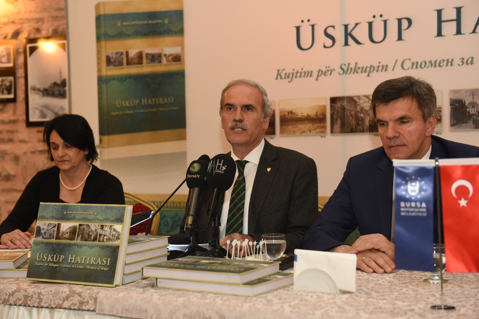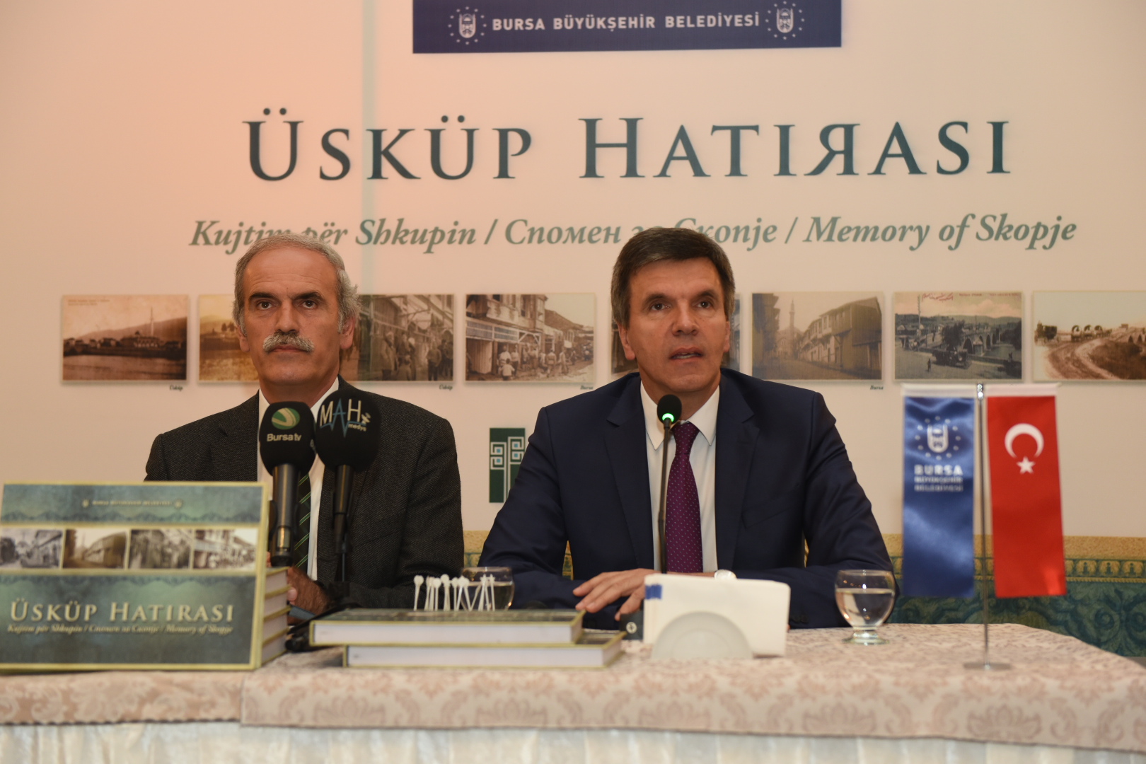 Makedonya’nın 150 yıllık tarihi fotoğraflarla gün yüzüne çıkaran Makedonya Kültür Bakanlığı Müsteşarı Behicüddin Şehabi ve Daniela Nikolova tarafından hazırlanıp, Bursa Büyükşehir Belediyesi tarafından bastırılan Üsküp Hatırası isimli eserin tanıtımı İbrahim Paşa Kültür Merkezi’nde yapıldı. Aynı zamanda Makedonya Kültür Bakanlığı arşivlerinden derlenen eski Üsküp fotoğraflarından oluşan serginin de açıldığı etkinliğe Büyükşehir Belediye Başkanı Recep Altepe, Makedonya Kültür Bakanlığı Müsteşarı Behicüddin Şehabi, Makedonya Kültür Bakanlığı heyeti ile çok sayıda davetli katıldı.