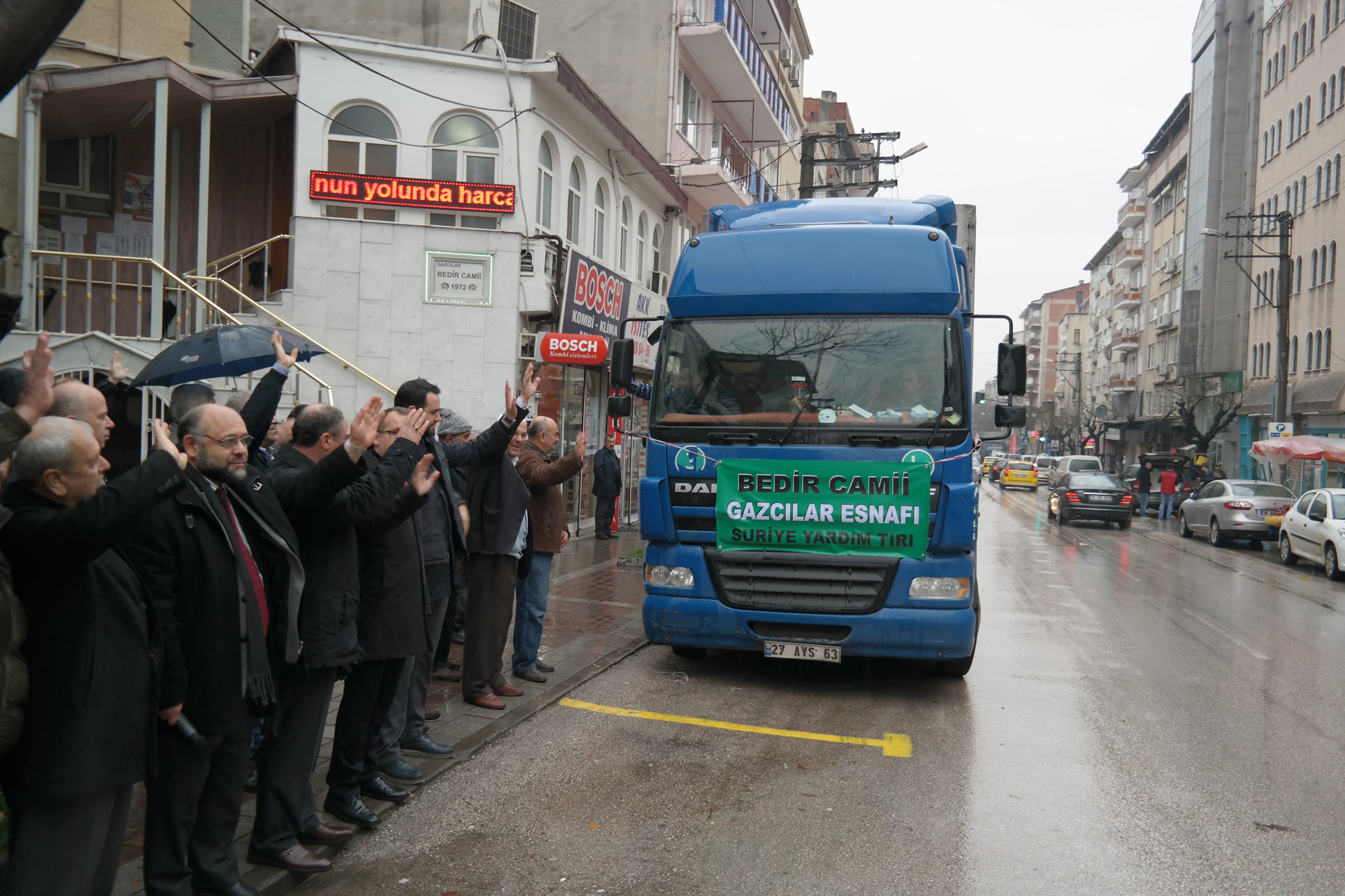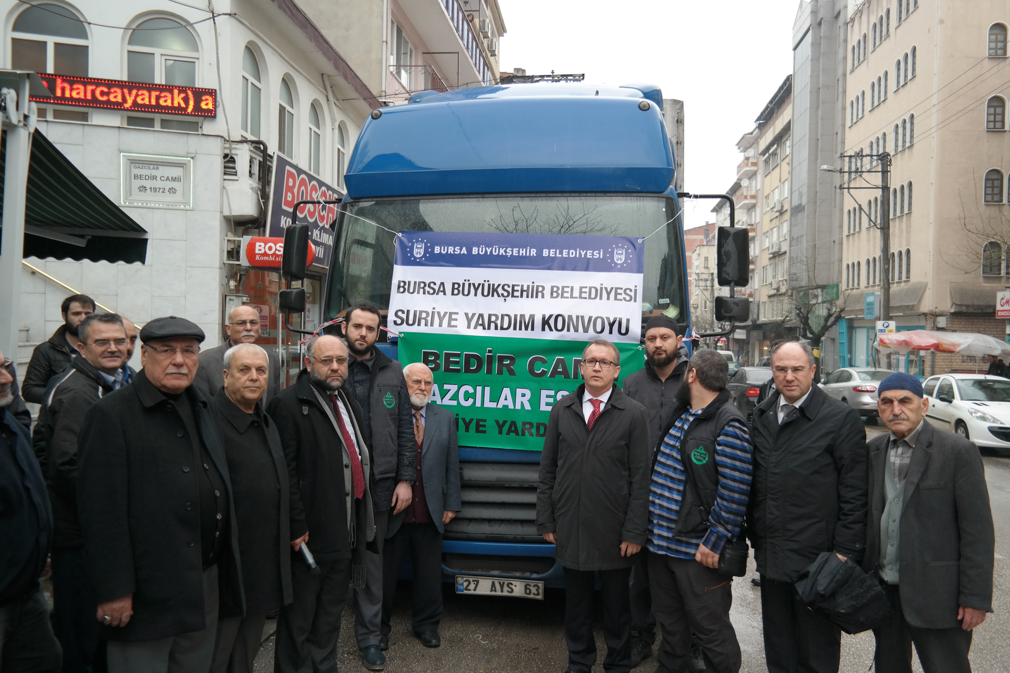 - BURSA BÜYÜKŞEHİR BELEDİYESİ’NİN KATKILARIYLA GAZCILAR ESNAFI TARAFINDAN TOPLANAN 1 TIR DOLUSU YARDIM MALZEMESİ, SAVAŞ MAĞDURU MAZLUMLARA ULAŞTIRILMAK ÜZERE SURİYE’YE GÖNDERİLDİ.