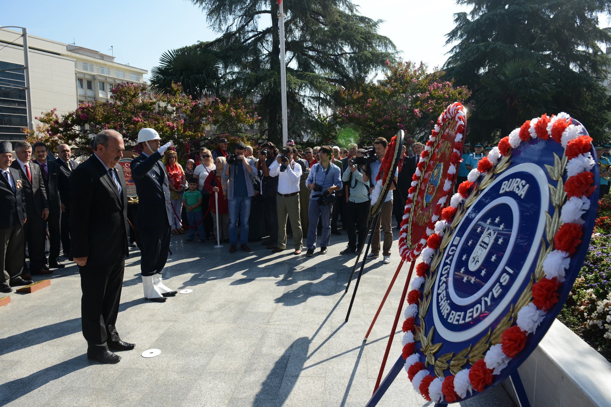 Türkiye Büyük Millet Meclisi’nin Ulu önder Atatürk’e gazi ünvanı ve Mareşal rütbesi vermesinin 92. yıl dönümü olan ‘Gaziler Günü’ törenlerle kutlandı. Heykel’deki Atatürk Anıtı önünde düzenlenen törene Bursa Vali Vekili Ahmet Hamdi Usta, Bursa Garnizon ve Jandarma Bölge komutanı Tümgenereal Seyfullah Saldık, Büyükşehir Belediyesi Genel Sekreter Yardımcısı Necmettin Şenocak, Muharip Gaziler Derneği Bursa Şubesi Başkanı Muzaffer Uyar, askeri yetkililer, Gaziler ve vatandaşlar katıldı. Saygı duruşu ve İstiklal Marşı’nın okunmasının ardından bir konuşma yapan Muharip Gaziler Derneği Bursa Şubesi Başkanı Muzaffer Uyar, Şehit ve Gazilerimizin Cumhuriyetimizin teminatı ve temel taşları olduğunu ifade ederek, kahramanlık, cesaret ve fedakarlıkla Türk milletine her zaman güç ve ilham kaynağı olduğunu vurguladı.