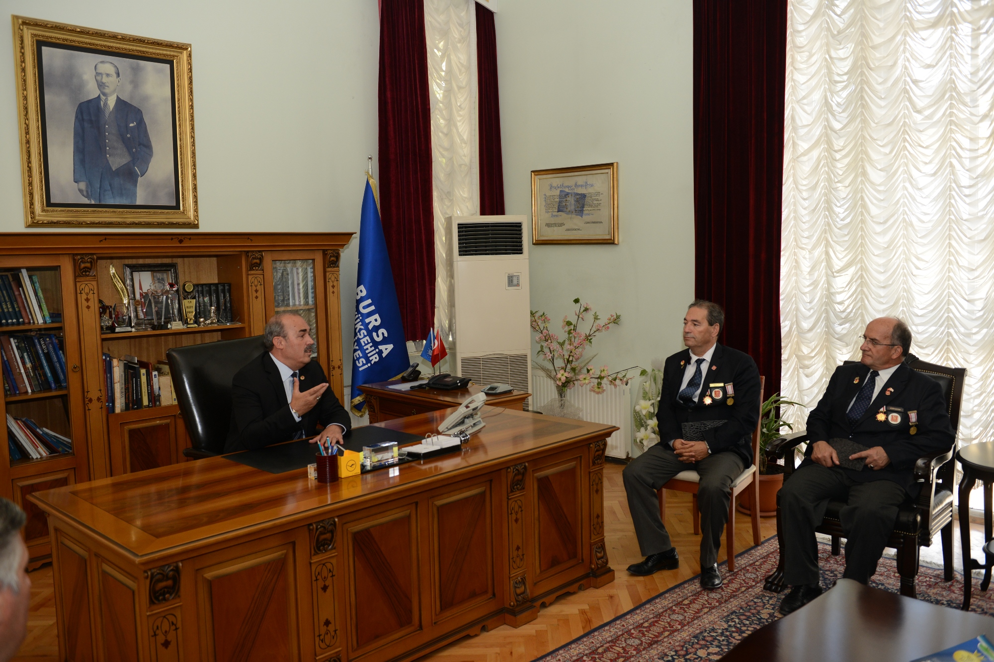 Etkinlikler kapsamında Muharip Gaziler Derneği Bursa Şubesi Başkanı Muzaffer Uyar, Türkiye Harp Malülü Gaziler Şehit Dul ve Yetimleri Derneği Başkanı Turgut Çakmak, Emekli Subaylar Derneği Başkanı Kadir Aslan, Emniyet Teşkilatı Şehit Aileleri ve Gaziler Derneği Başkanı Süleyman Korkmaz, Büyükşehir Belediyesi Genel Sekreter Yardımcısı Necmettin Şenocak’ı tarihi binada ziyaret etti. Şehit ve Gazilerin ülkemizin bağımsızlığında çok önemli mücadeleler verdiğini belirten Şenocak, ‘Şehit ve Gazilerin hayatlarını ortaya koyarak emanet ettikleri bu toprakları, daha ileriye taşımak bizim boynumuzun borcudur.’dedi.