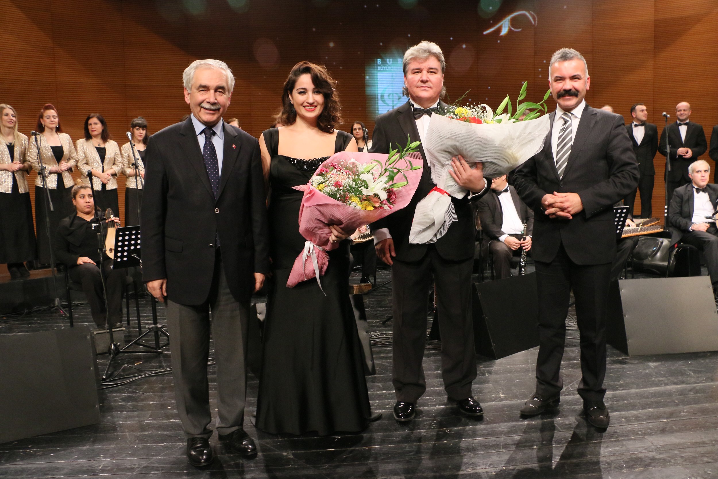Bursa Büyükşehir Belediyesi Orkestrası Türk Sanat Müziği Bölümü’nün Ocak ayı konseri, Atatürk Kongre Kültür Merkezi (Merinos AKKM) Orhangazi Salonu’nda gerçekleştirildi. Konserde, Büyükşehir Belediyesi Orkestrası Türk Sanat Müziği Bölümü’nün usta sanatçılarından Serkan Gençer’in şefliğinde, ‘Kadri Şençalar’ın eserleri seslendirildi. Konserin ilk bölümünde Türk Sanat Müziği solistleri İlker Cansevdi, Ayşegül Yüzgeç, Kemal Alevli ve Nezihe Boztepe sevilen şarkıları söyleyerek, dinleyicilere keyifli anlar yaşattı. Konserin ikinci bölümünde ise TRT İstanbul Radyosu Sanatçısı Mine Geçili sahneye çıkarak, sanatseverlere eşsiz bir müzik ziyafeti sundu. Geçili, Bursalı hayranlarının gönlünü fethetti. Müzikseverlerin yoğun ilgi gösterdiği konserin sonunda, şarkıları keyifle dinleyen Muhsin Özlükurt ve Büyükşehir Belediyesi Orkestra Şube Müdürü Turgay Mercan, usta sanatçılara çiçek vererek teşekkür etti. Sanatseverler de sanatçılara beğenilerini alkışlarla gösterdi.