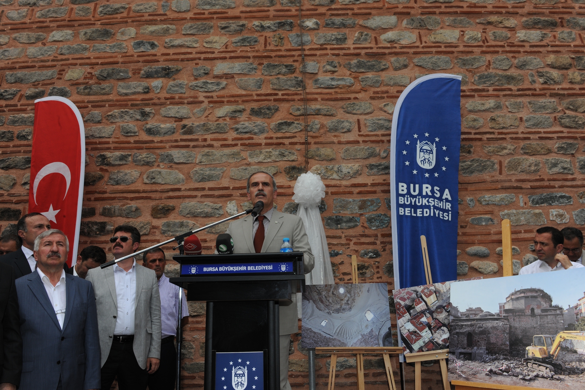 Büyükşehir Belediye Başkanı Recep Altepe, geçmişine sahip çıkmayanın geleceğini şekillendiremeyeceğini söyledi. Bundan ilham aldıklarını ve geçmişe sahip çıkarak unutulmaya yüz tutmuş, metruk vaziyetteki tarihi eserleri bir bir ayağa kaldırdıklarını belirten Başkan Altepe, yaptıkları çalışmalarda dönem farkını gözetmediklerini ifade etti. Bursa’da Cumhuriyet’ten Osmanlı dönemine, Roma’dan Bitinya dönemine kadar onlarca farklı kültüre ait yüzlerce tarihi eseri ayağa kaldırdıklarını, onlara hayat verdiklerini vurguladı. Başkan Altepe, “Yaptığımız çalışmalarla, özellikle tarihi ve kültürel alanda dünyaya örnek olmaya devam ediyoruz” diye konuştu.