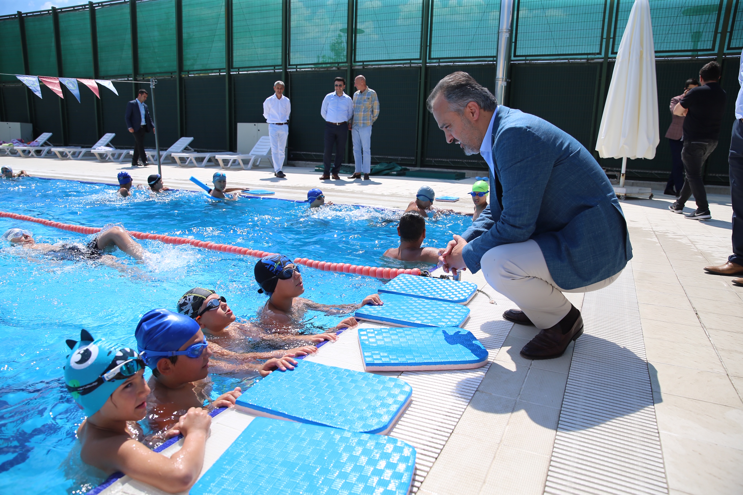 Bursa’nın sağlıklı gelişimini hedefleyen çalışmalarını titizlikle sürdüren Büyükşehir Belediyesi, çocuklar ve gençlere yönelik eğitici faaliyetlerine de devam ediyor. Bursa Büyükşehir Belediye Başkanı Alinur Aktaş, yaz spor okullarında yüzme eğitimi alan çocuklarla bir araya geldi.