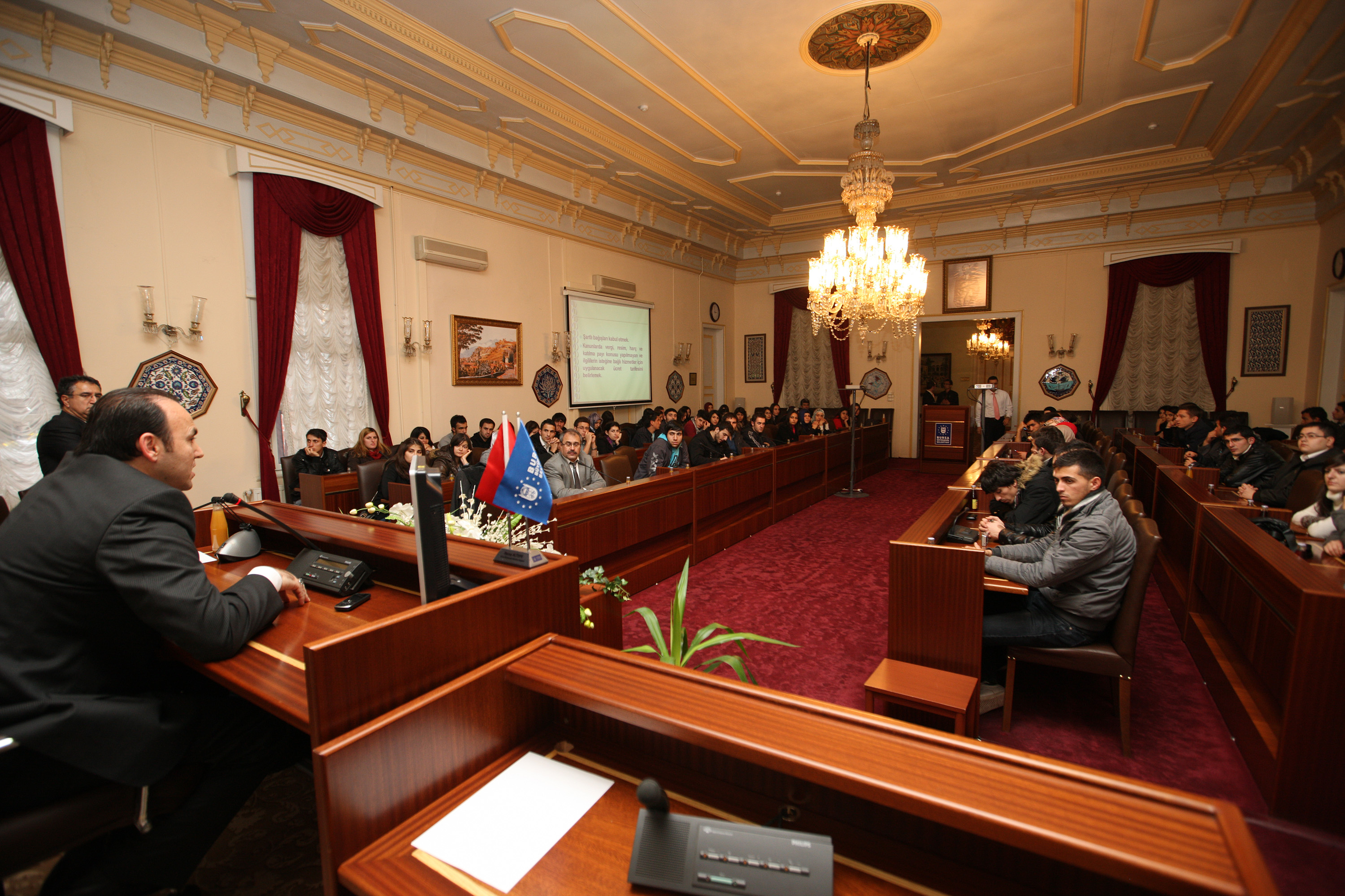 Konuk öğrencileri, Büyükşehir Belediyesi Meclis Salonu’nda ağırlayan Büyükşehir Yazı İşleri ve Kararlar Dairesi Başkanı Neşet Çakmaklı, Büyükşehir Meclisi’nin çalışmaları hakkında bilgi verdi. Belediyeciliğin büyük bir özveri ve çalışma azmi gerektirdiğini belirten Çakmaklı, “Sizler de geleceğin yerel yönetici adaylarısınız. İnsanın doğumundan ölümüne kadar geçen hayat çizgisinin her aşamasında, belediyecilik hizmetlerinin izlerini görmek mümkün. Yerel yöneticiler ve yerel yönetimlerin ilgili birimlerinde görev alan uzman personel her ne kadar bulundukları şehrin imarı, altyapısı ve diğer her türlü şehircilik hizmetlerinden sorumlu olsalar da varlık nedenlerinin asıl amacı, insanların rahatı ve mutluluğunu sağlayabilmektir. Belediyecilik hizmetlerinin öznesinde insan vardır” diye konuştu.