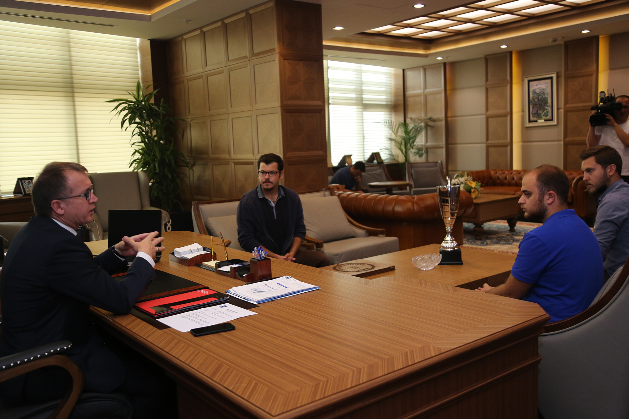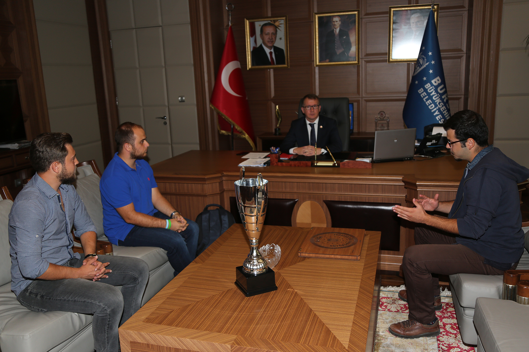 BURSA - Shell Eco Maraton İstanbul ile Shell Eco Maraton Europa yarışmalarına katılan ve takım halinde derece alan Uludağ Üniversitesi Makine Topluluğu (UMAKIT) öğrencileri, Büyükşehir’e teşekkür ziyaretinde bulundu. Ankara Yolu’ndaki başkanlık binasında gerçekleşen görüşmede, başarılı öğrencileri Büyükşehir Belediye Başkanvekili Abdülkadir Karlık ağırladı.