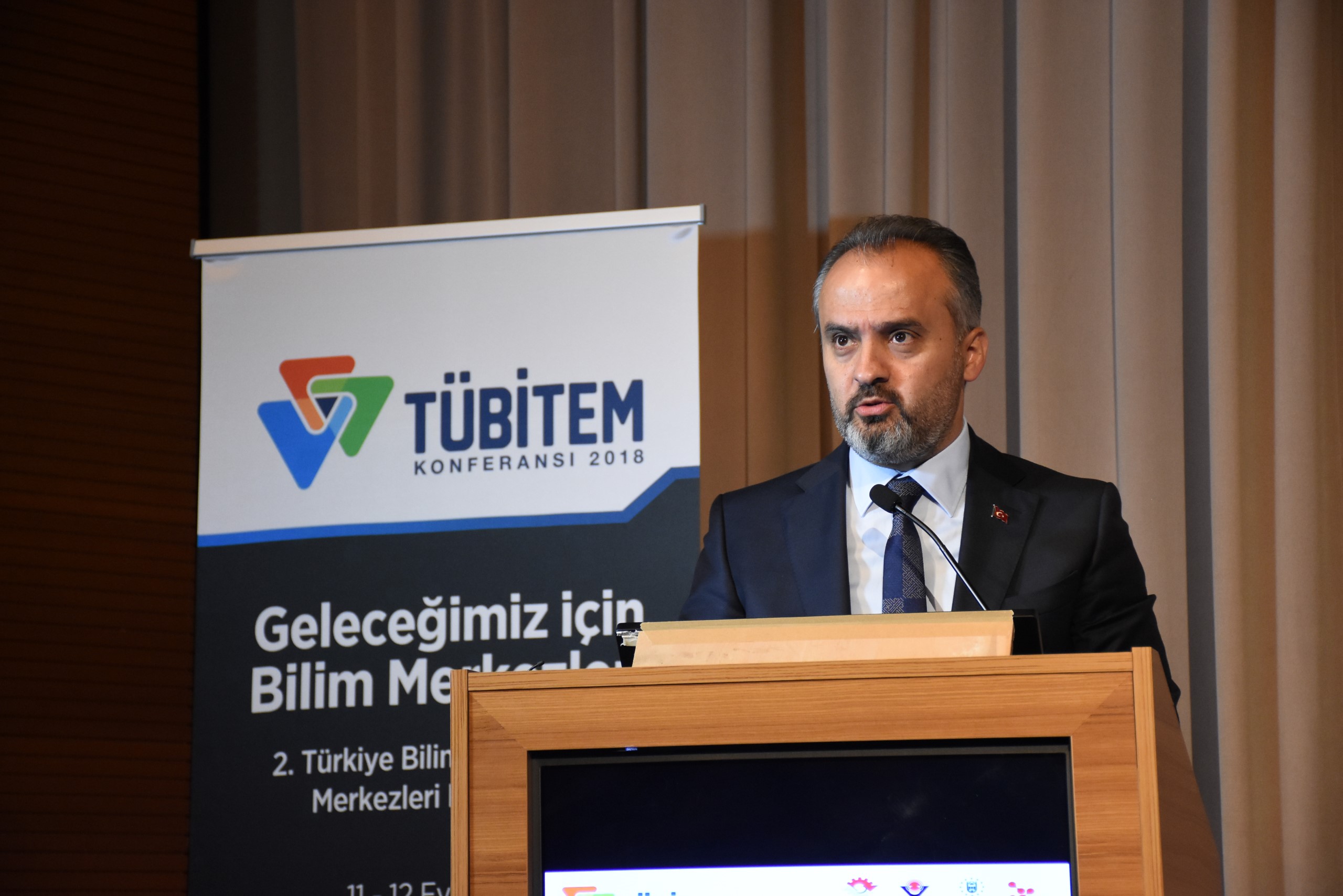 BURSA - TÜBİTAK ve Bursa Büyükşehir Belediyesi’nin ortaklaşa düzenlediği ‘Geleceğimiz için bilim merkezleri’ ana temalı 2. Türkiye Bilim ve Teknoloji Merkezleri Konferansı başladı. Konferansın açılış töreninde konuşan Bursa Büyükşehir Belediye Başkanı Alinur Aktaş, Türkiye’nin 2023, 2053 ve 2071 hedeflerine giden yolda bilim merkezlerinin ciddi bir altyapı teşkil edeceğini söyledi.