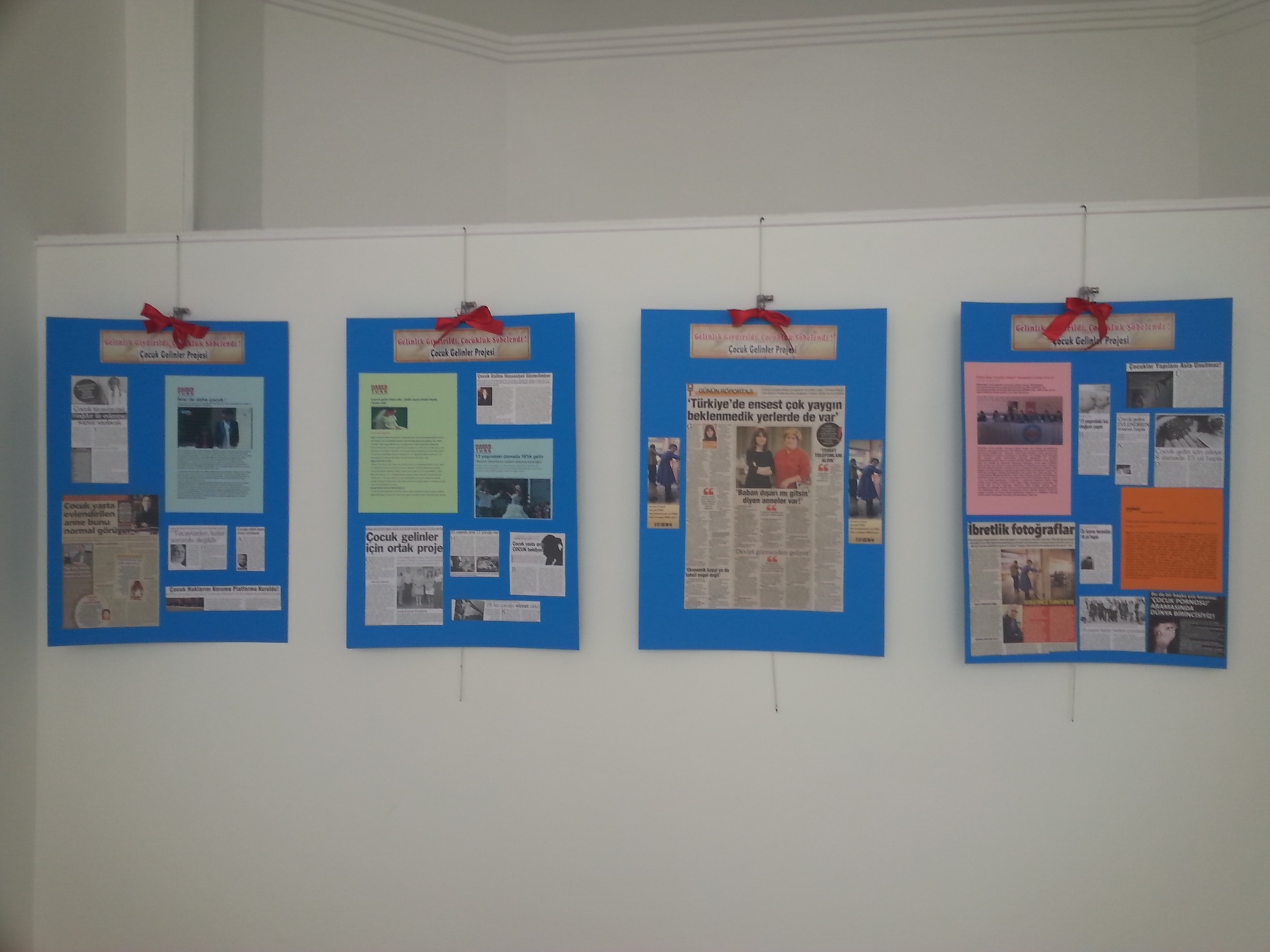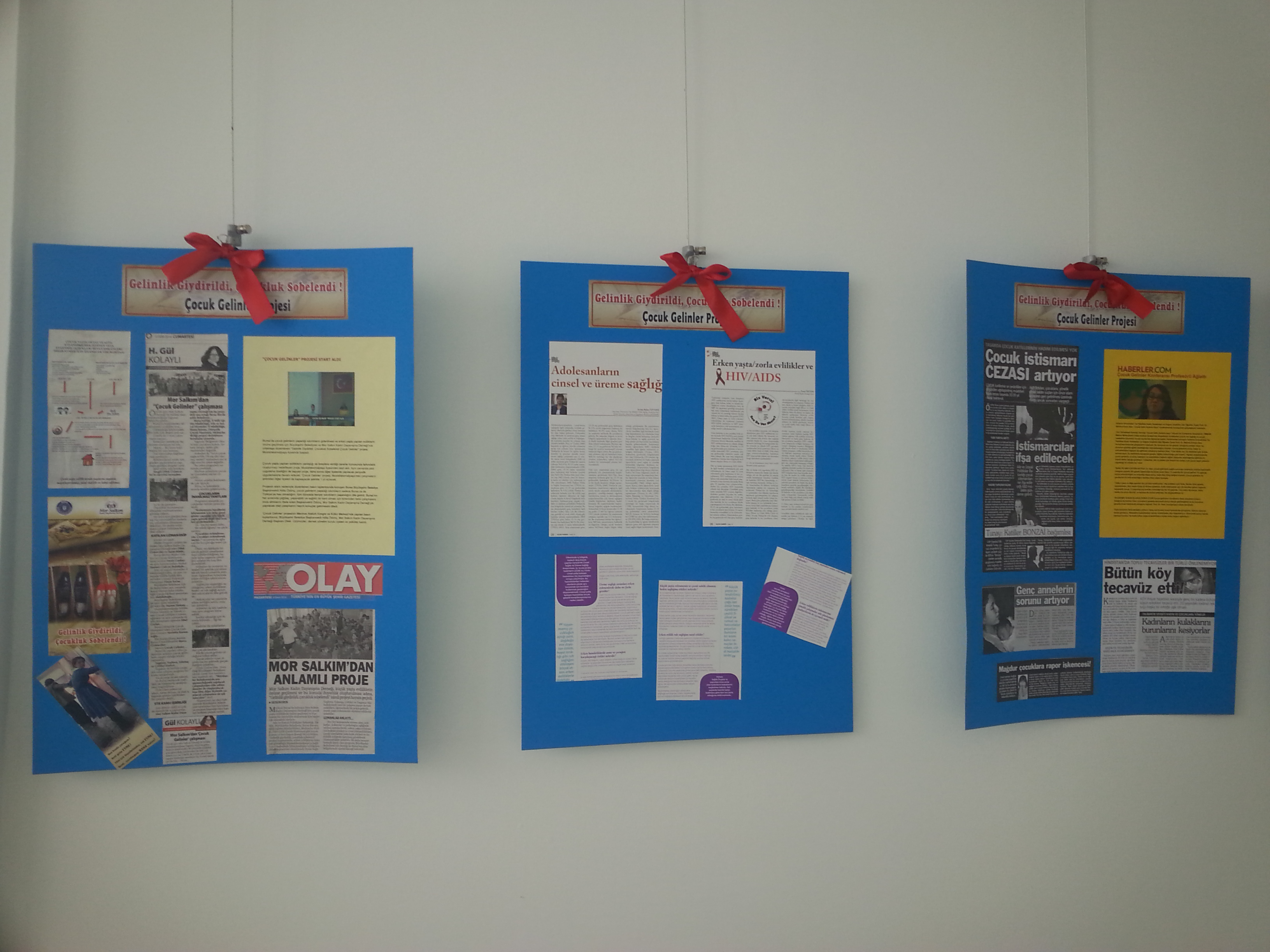 Köy çalışmaları tamamlanan proje kapsamında Tayyare Kültür Merkezi’nde çocuk gelinlerle ilgili gazete kupürleri sergisi düzenlendi. Sergi Büyükşehir Belediye Başkanvekili Abdülkadir Karlık, meclis üyeleri, STK temsilcileri ve Mor Salkım Kadın Dayanışma Derneği Başkanı Dilek Üzümcüler tarafından ziyarete açıldı. Sergide 2014 yılı çocuk evlilik haberleri yanı sıra işadamı Faik Kaplan’ın kullanım hakkını Mor Salkım Kadın Dayanışma Derneğine verdiği bir yıl süren çalışmasının sonucu 14 fotoğraftan bazıları yer aldı.