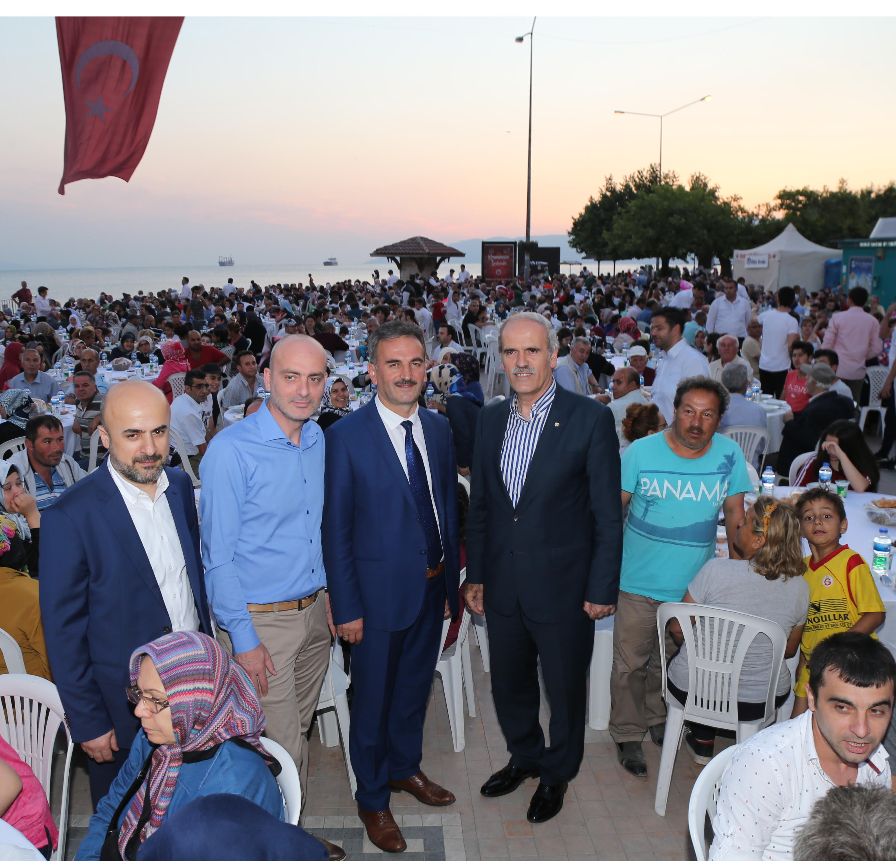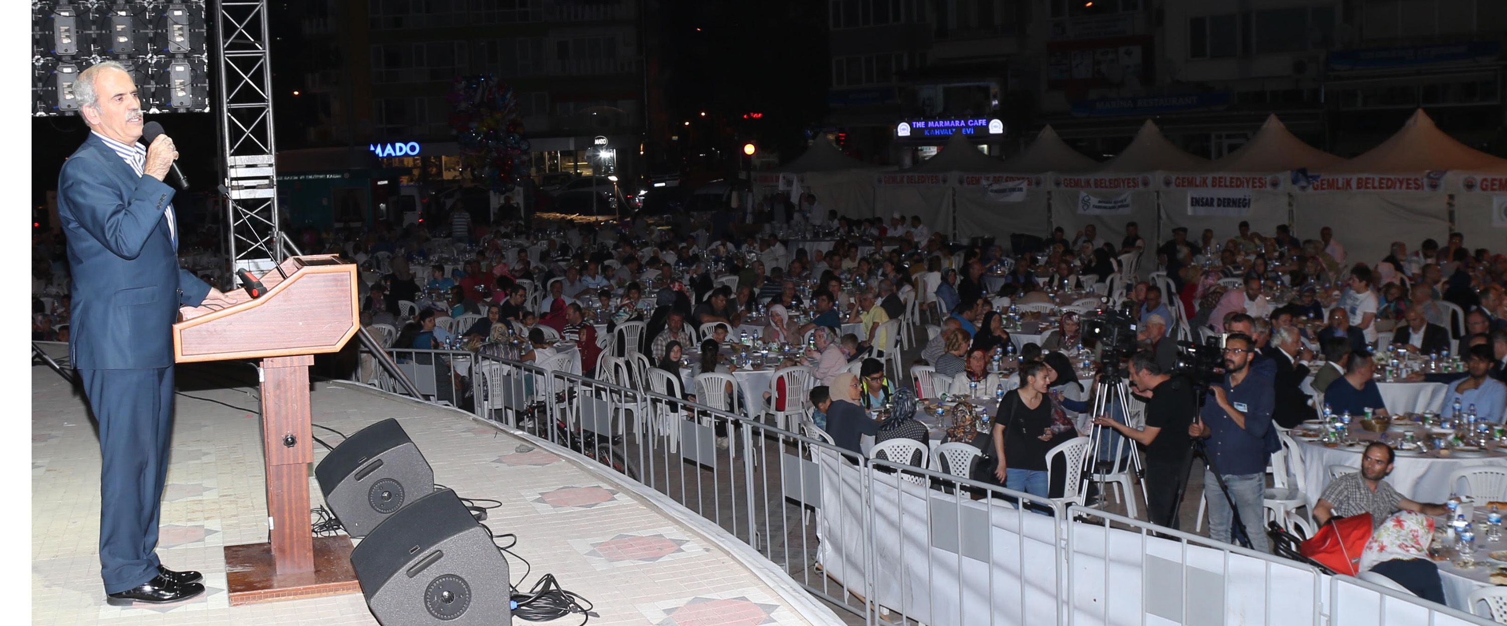Ramazan ayında ilçelerde vatandaşlarla iftar yapan Bursa Büyükşehir Belediye Başkanı Recep Altepe, Gemlik’te İskele Meydanı’nda düzenlenen iftar programına katıldı. İlçede büyük katılım sağlanan iftarda, orucunu vatandaşlarla birlikte açan Başkan Altepe, Ramazan’ın önemine vurgu yaparak, “Gemlik sahilinde güzel bir iftarda bir aradayız. Ramazan, rahmet ve bereket ayı, kardeşliklerin geliştiği güzel ay. Ramazan’ı en iyi şekilde yaşıyoruz. Ne mutlu bizlere, böyle güzel bir kültüre sahibiz. Gemlik’te, Bursa’nın her yerinde ve Türkiye’nin her köşesinde, Ramazan gerçekten bir başka yaşanıyor” diye konuştu.