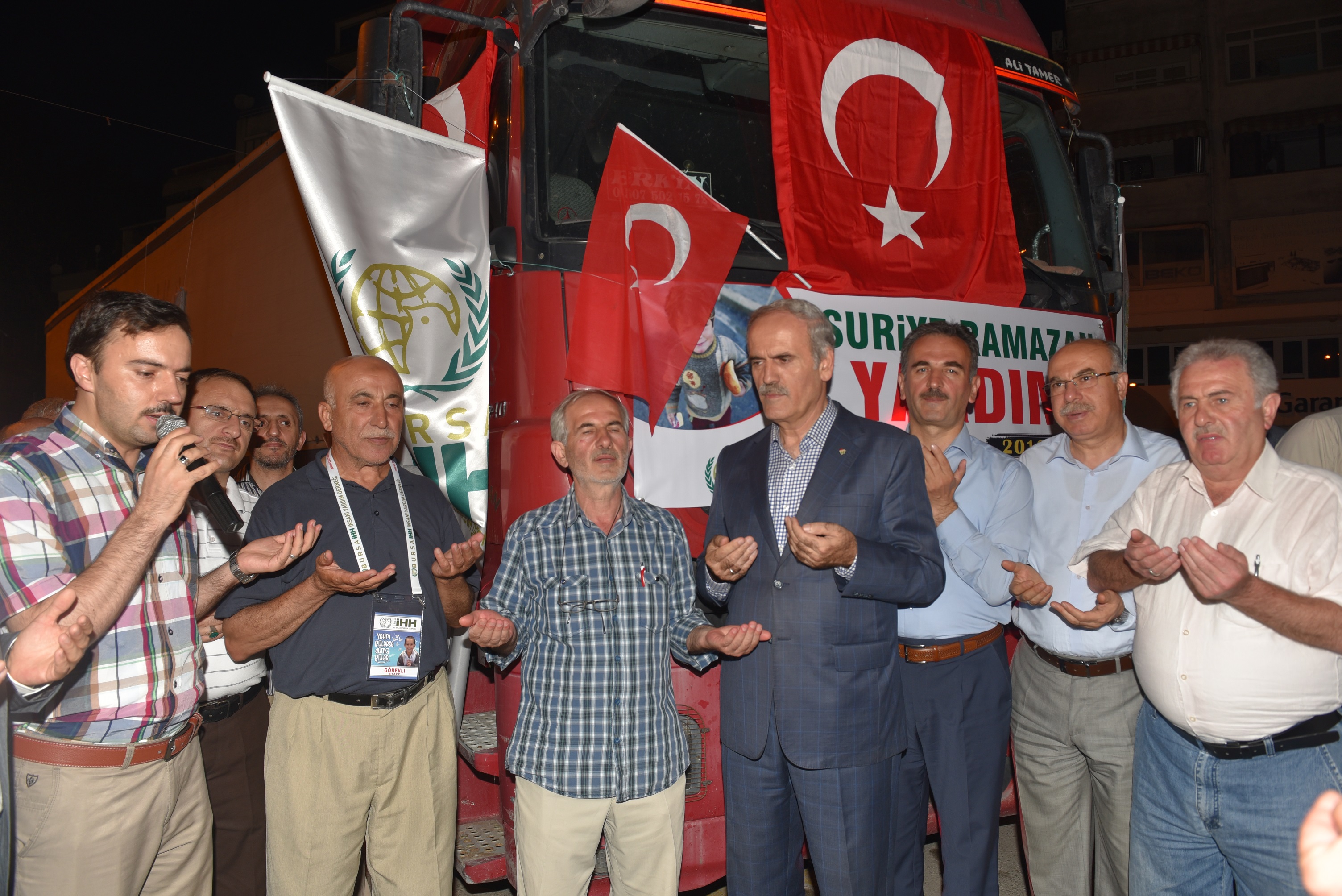 Gemlik’te düzenlenen iftar programı aynı zamanda anlamlı bir yardım organizasyonuna da ev sahipliği yaptı. İHH Gemlik Temsilciliği tarafından hayırseverlerin de destekleriyle toplanan bir TIR dolusu yardım malzemesi Suriye’ye uğurlandı. Müslümanlara yapılan zulmün bir an önce durması temennisinde bulunan Büyükşehir Belediye Başkanı Recep Altepe, “İnşallah bayrama kadar savaş biter ve Suriyeli kardeşlerimiz de bayramı yaşar. Bu arada bize düşen de yardım etmek. Dost kötü günde belli olur. Onların yanında olmak bize yakışır. Bu yardım nedeniyle de İHH ve destek veren herkese teşekkür ediyorum” diye konuştu.