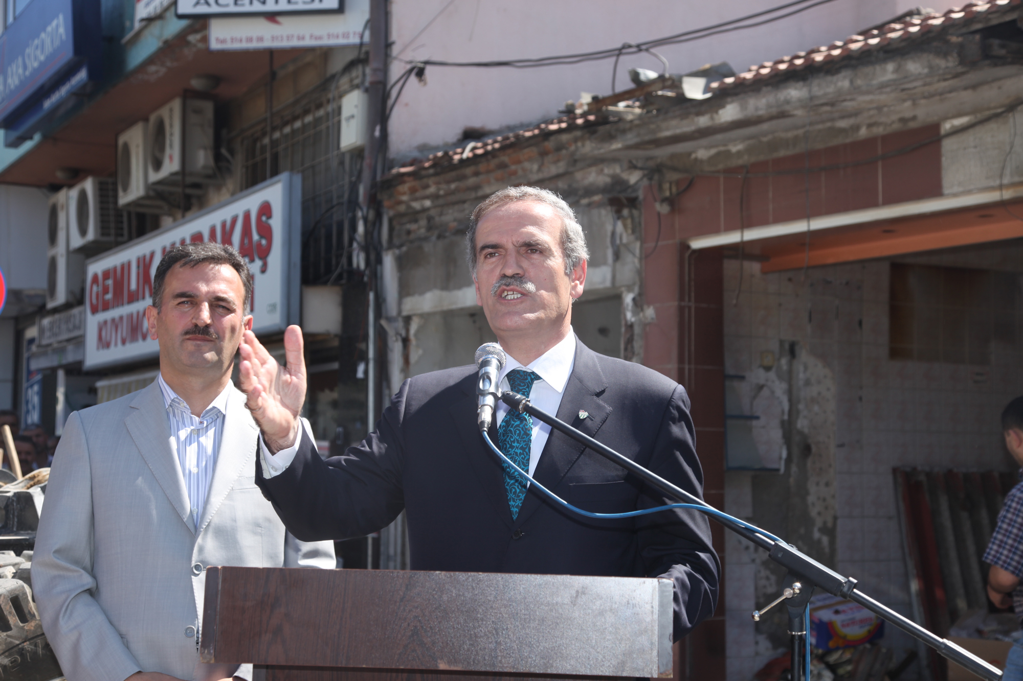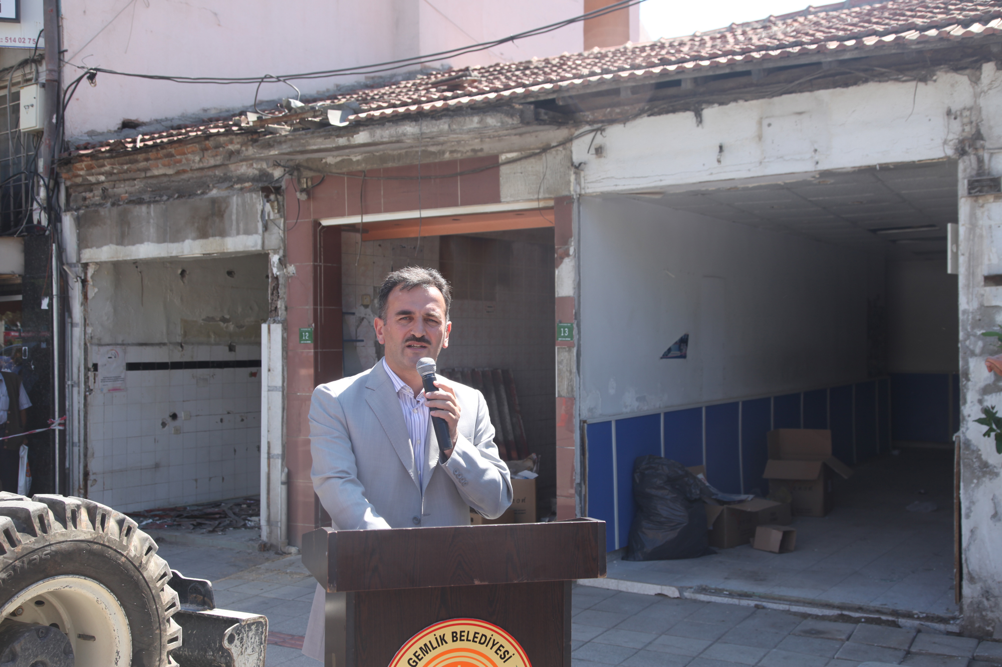 Gemlik’in vitrininin yenileneceği proje kapsamında yıkım çalışmalarını başlatan Büyükşehir Belediye Başkanı Recep Altepe, bu yıkımın sembolik olduğunu ancak yıllardır konuşulan bir projenin başlaması açısından büyük anlam taşıdığını söyledi. Gemlik’in de daha sağlıklı ve yaşanılabilir bir kent olması için yoğun bir çaba içinde olduklarını ifade eden Başkan Altepe, “Kanalizasyon, içme suyu ve yağmur suyu hatları, su depoları gibi altyapı yatırımlarına 3 yılda 30 milyon TL’lik harcama yaptık. Bunun yanında Çarşı Deresi ıslah projesi devam ediyor. Köylere kadar tüm yolların asfaltlanması, tarihi eserlerin ayağa kaldırılması çalışmalarımız sürüyor. Karacaali Narlı tesislerimizi açmıştık şimdi ilave tesisler ve havuzumu da tamamlamak üzereyiz. Atatepe Sosyal tesislerini bir an önce ilçeye kazandırmak için yoğun çalışma içindeyiz. İskele onarımları, sahil düzenleme, park ve meydan çalışmalarımız ilçenin her köşesinde devam ediyor. Gemlik’te şuana kadar 74 proje üzerinde çalışıyoruz, dönem sonuna kadar 100 projeyi ilçeye kazandırmak istiyoruz. Tüm bu hizmetler Gemliklileri mutlu etmeli. Düne kadar sözde olan projeleri Gemlik Belediyemizle koordineli bir şekilde icraata dönüştürüyoruz” diye konuştu.