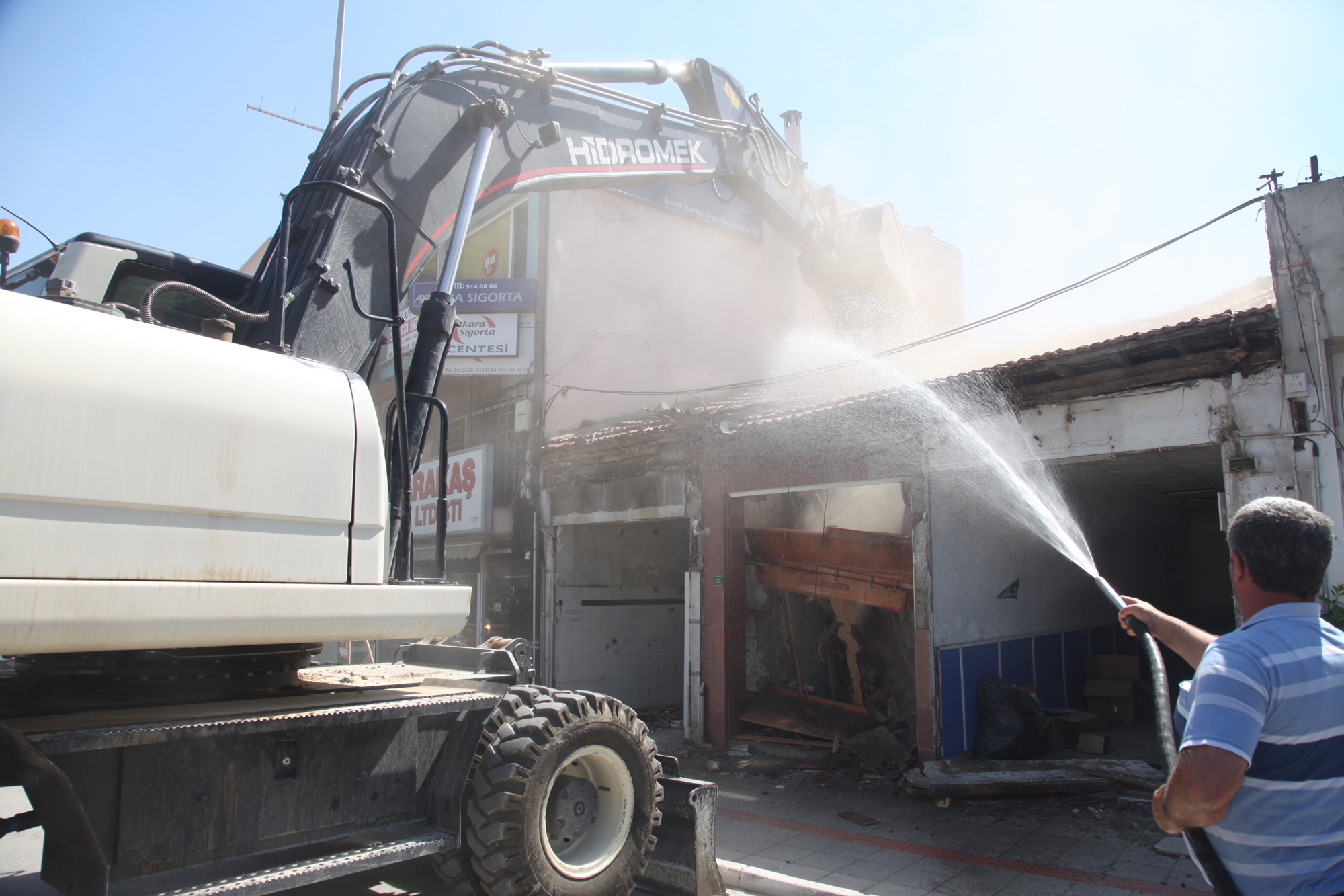 Konuşmaların ardından kamulaştırması tamamlanan ilk binanın yıkımı yapıldı.