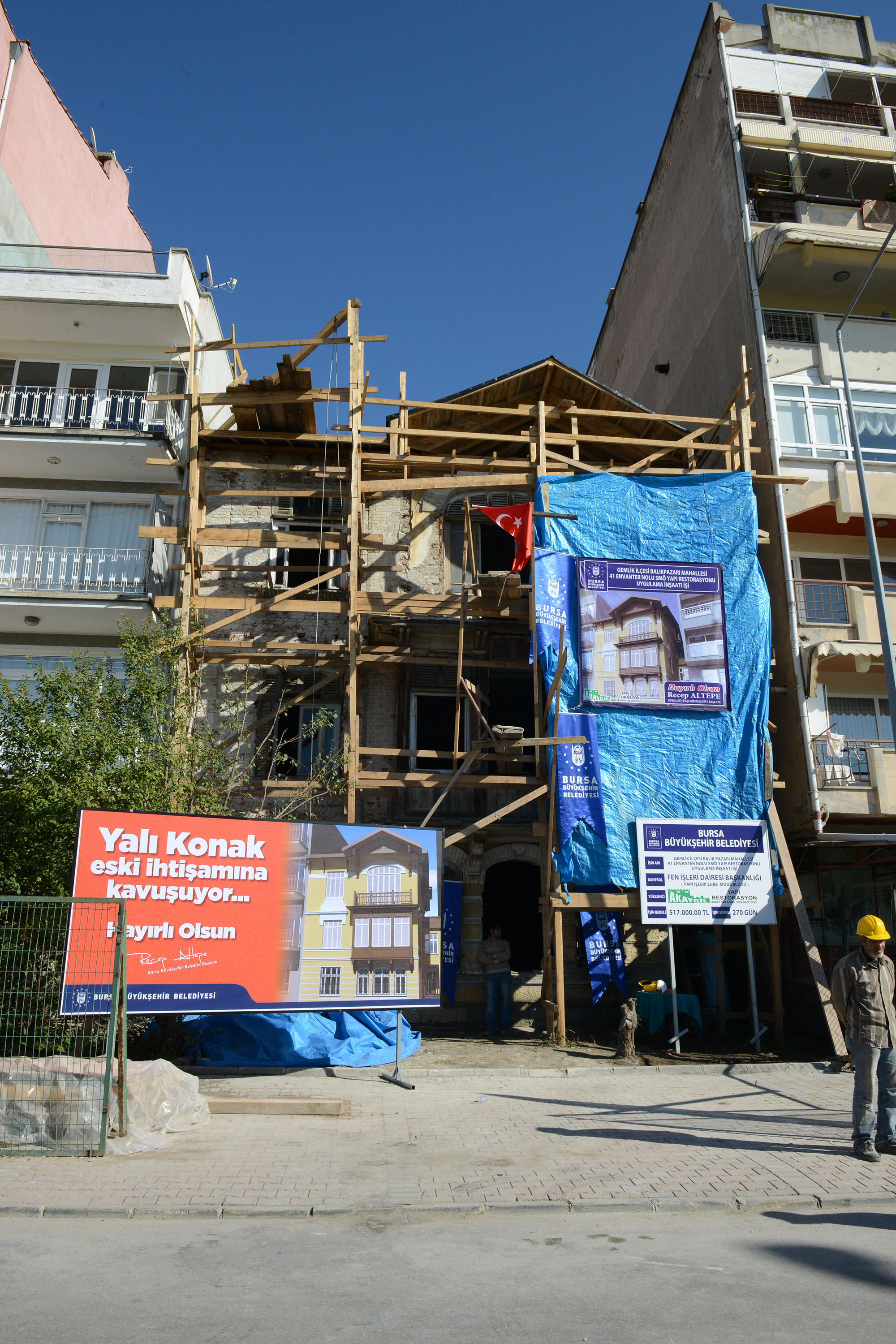 - BURSA BÜYÜKŞEHİR BELEDİYESİ TARAFINDAN ORİJİNAL KİMLİĞİYLE YENİLENEREK GEMLİK İLÇESİ’NE SOSYAL TESİS OLARAK KAZANDIRILACAK GEMLİK YALI KONAĞI’NDA RESTORASYON, İLK HARCIN KOYULMASIYLA BAŞLADI.