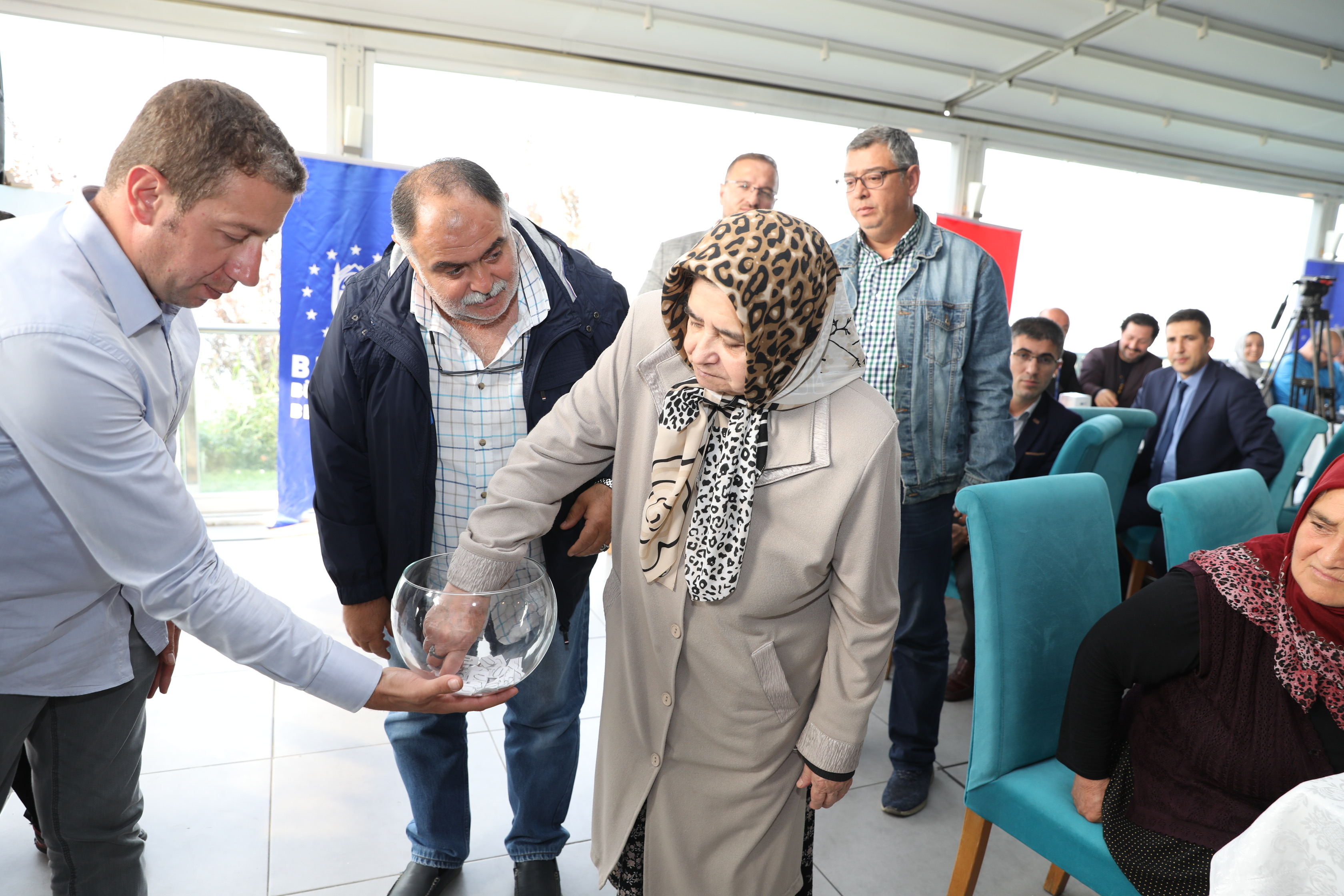 Konuşmaların ardından heyelan mağduru olan vatandaşların daireleri Gemlik 2. Noteri huzurunda yapılan kura çekilişi ile belirlendi.