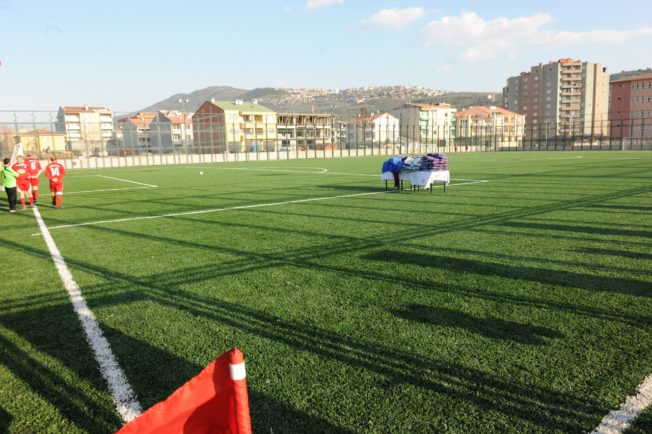 Gemlik´teki spor kulüplerinin kullanacak saha bulmakta zorlandıkları ve antrenman yapmak için bile Bursa´nın değişik ilçelerine gitmek zorunda kalması üzerine harekete geçen Büyükşehir Belediyesi, geçtiğimiz aylarda hizmete açılan Gemlik Anadolu İmam Hatip Lisesi Spor Salonu’nun ardından ilçeye ikinci büyük spor tesisini kazandırdı. Gençlik ve Spor İl Müdürlüğü tarafından sağlanan arsada, Gemlik Belediyesi’nden de altyapı desteği alan Büyükşehir Belediyesi, yaklaşık 700 bin TL’lik yatırımla, 2 portatif tribünü bulunan standart ölçülerdeki suni çim sahayı ilçeye kazandırdı. Amatör spor kulüpleri başta olmak üzere çevredeki gençler ile çocuklara da hizmet verecek olan sahanın açılışı, Başkan Altepe’nin yanı sıra Gençlik ve Spor İl Müdürü Dr. Süleyman Şahin, Gemlik Belediye Başkanvekili Refik Yılmaz, belediye meclis üyeleri ve vatandaşların katılımıyla yapıldı.