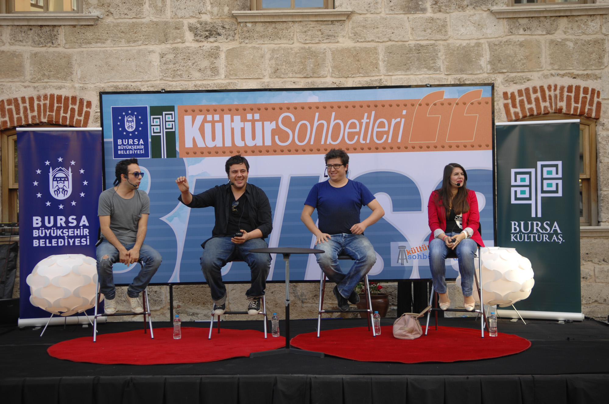 Büyükşehir Belediyesi Kültür A.Ş. tarafından Fabrika-i Hümayun Faruk Saraç Tasarım Meslek Yüksekokulu’nda düzenlenen söyleşiye katılan oyuncular, dinamik ve esprili tavırlarıyla hayranlarının gönlünü bir kez daha fethetti. Uzun yıllar Bursa’da yaşadıktan sonra İstanbul’a giderek BKM Mutfak’a katılma süreçlerini anlatan Eser Yenenler, İbrahim Büyükak ve Oğuzhan Koç dostluklarının çok eski yıllara dayandığını ifade etti.