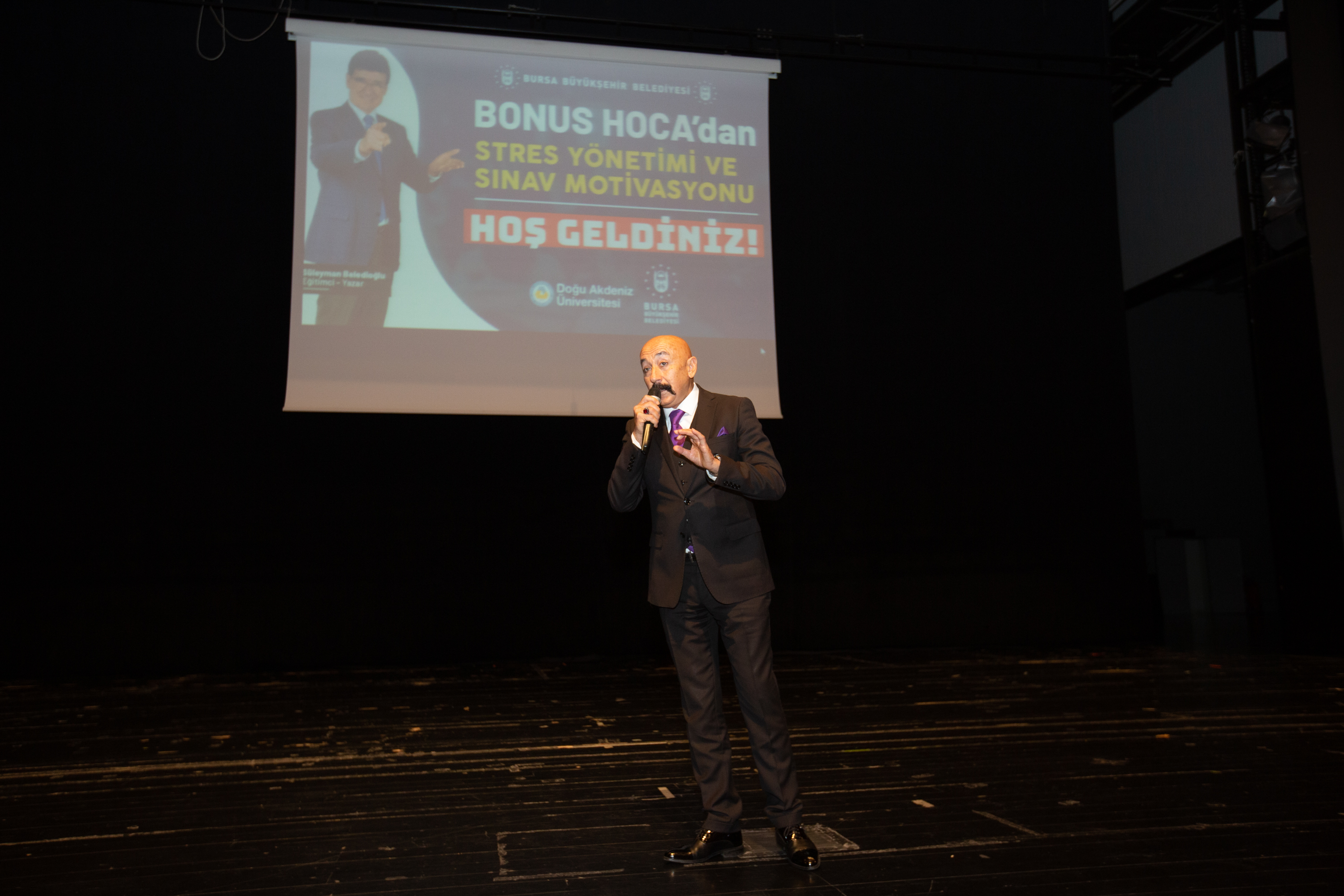BURSA – Bursa Büyükşehir Belediyesi, Bonus Hoca olarak bilinen Eğitimci-Yazar Süleyman Beledioğlu’nun sunumuyla “Stres Yönetimi ve Sınav Motivasyonu” adlı seminerde Bursalı gençleri buluşturdu.