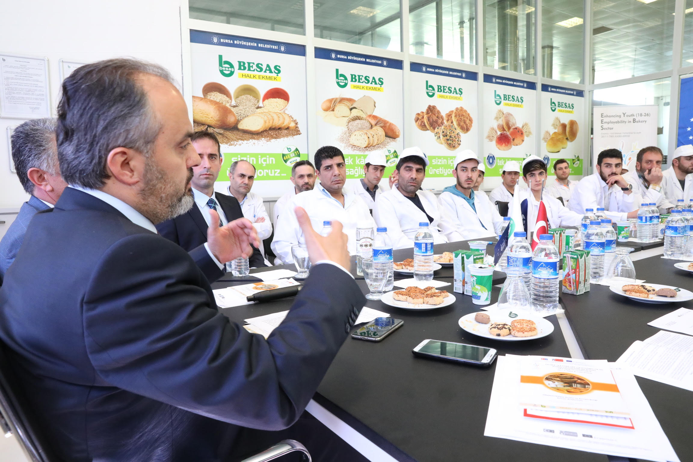 Büyükşehir Belediye Başkanı Alinur Aktaş, Uludağ Üniversitesi kampüsündeki BESAŞ Unlu Mamulleri Araştırma ve Üretim Merkezi'ni ziyaret etti. BESAŞ koordinatörlüğünde yürütülen 'Fırıncılık Sektöründeki Genç (18-26) İstihdamının Artırılması' isimli projenin eğitim toplantısına katılan Başkan Aktaş, fırıncılarla bir araya geldi. BESAŞ Genel Müdürü Mustafa Bektaş'ın bilgilendirme yaptığı toplantıda, yapılan çalışmalar hakkında video sunum yapıldı.