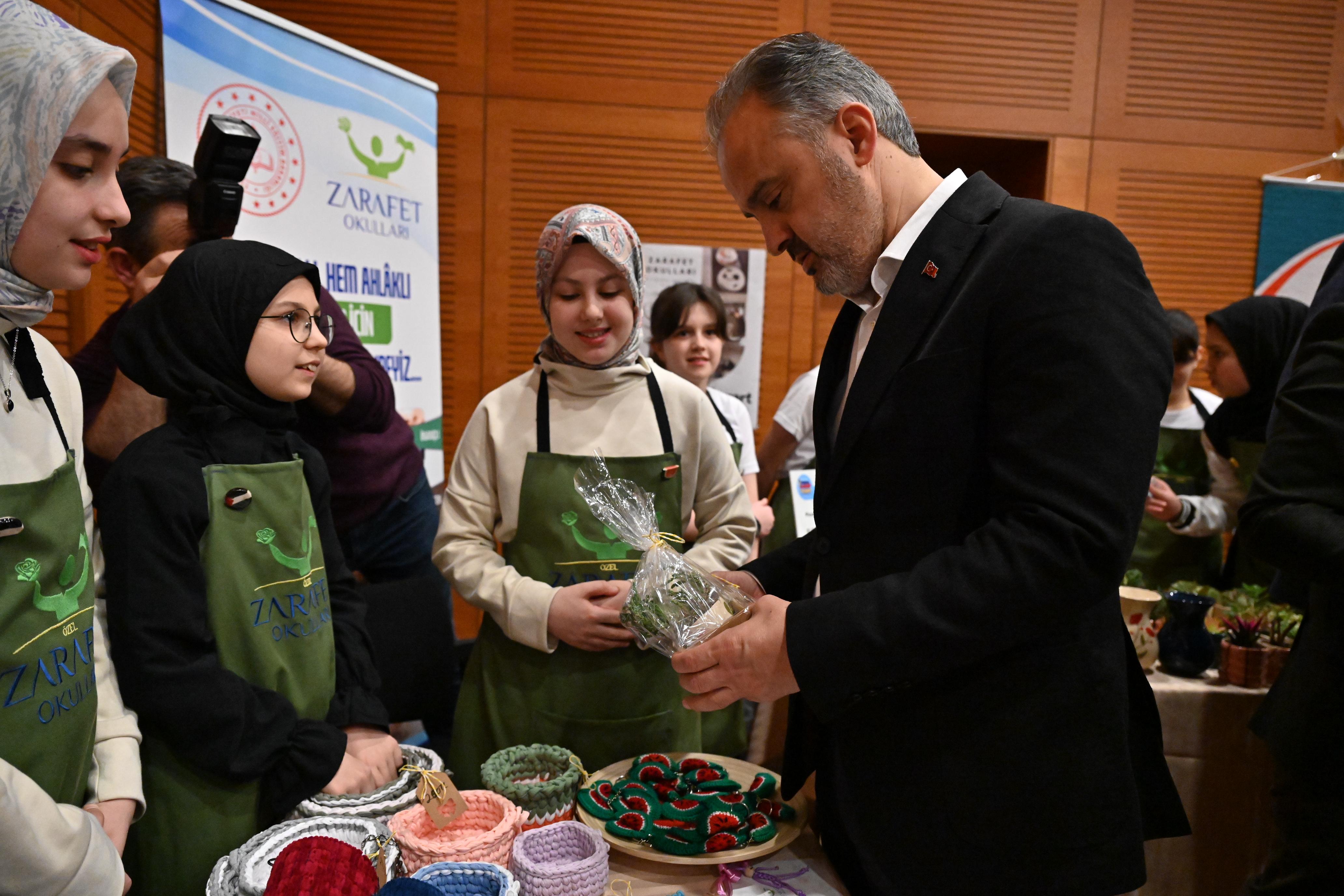 Bursa’da eğitim kurumlarına her alanda destekler vererek öğrencilerin daha kaliteli ortamlarda yetişmesine katkı sunan Büyükşehir Belediyesi, İl Milli Eğitim Müdürlüğü ile birlikte örnek bir çalışmaya daha imza attı. Merinos Atatürk Kongre Kültür Merkezi’nde düzenlenen ‘Girişimci Çocuklar Fuarı’na 50 farklı okuldan katılan 200’ü aşkın öğrenci, kendi hazırladıkları ürünleri hem sergiledi hem de satma imkanı buldu. İki ay boyunca okul arkadaşlarıyla birlikte hazırladıkları ürünleri kurulan stantlarda sergileyen çocuklar, el emeği ürünleri satabilmek için birbiriyle de kıyasıya yarıştı. Çocuklara ufak yaşlarda girişimcilik ruhunu aşılamayı amaçlayan fuarı ziyaret eden Bursa Büyükşehir Belediye Başkanı Alinur Aktaş, İl Milli Eğitim Müdürü Dr. Ahmet Alireisoğlu ve çocuklarla birlikte açılış kurdelesini kesti. Daha sonra stantları gezerek çocukların yaptığı çalışmaları inceleyen Başkan Aktaş, öğrencilerin el emeği ürünlerinden de satın aldı.