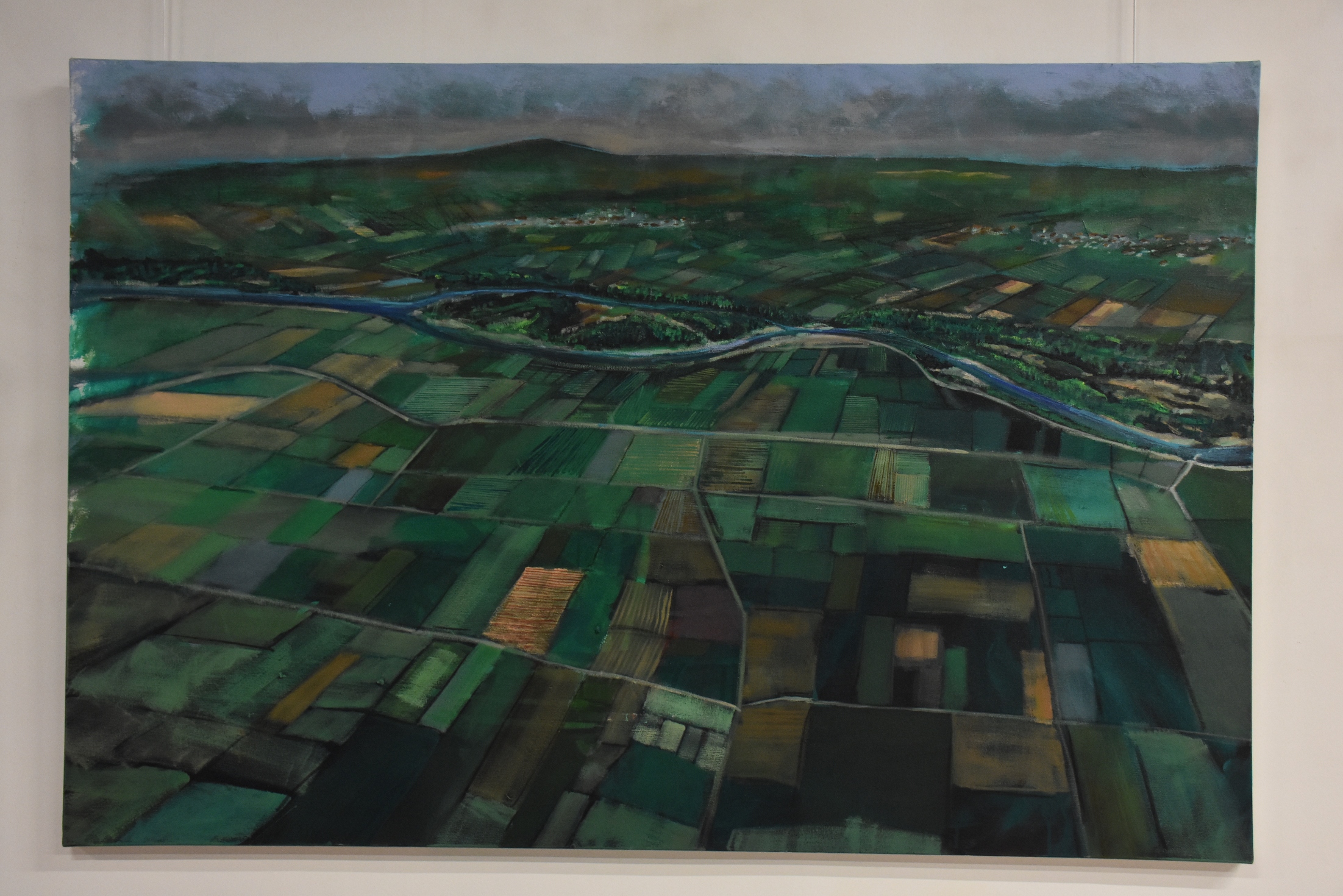 Mülteci konusu üzerine düşünerek ürettiği ‘Mülteci Yolu’ adlı resim sergisinin hemen ardından ‘Topografi’ resim serisine başladığını söyleyen Baybora Temel, “Topografi serisinin temel fikri, Trakya ve Avrupa’yı birbirinden ayıran fakat aynı zamanda iki yakanın da ortak değerleri olan Meriç, Tunca ve Arda nehirleri merkezinde, parsellenmiş, toprak arazi veya mülklerin topografisini resmetmekti” dedi.