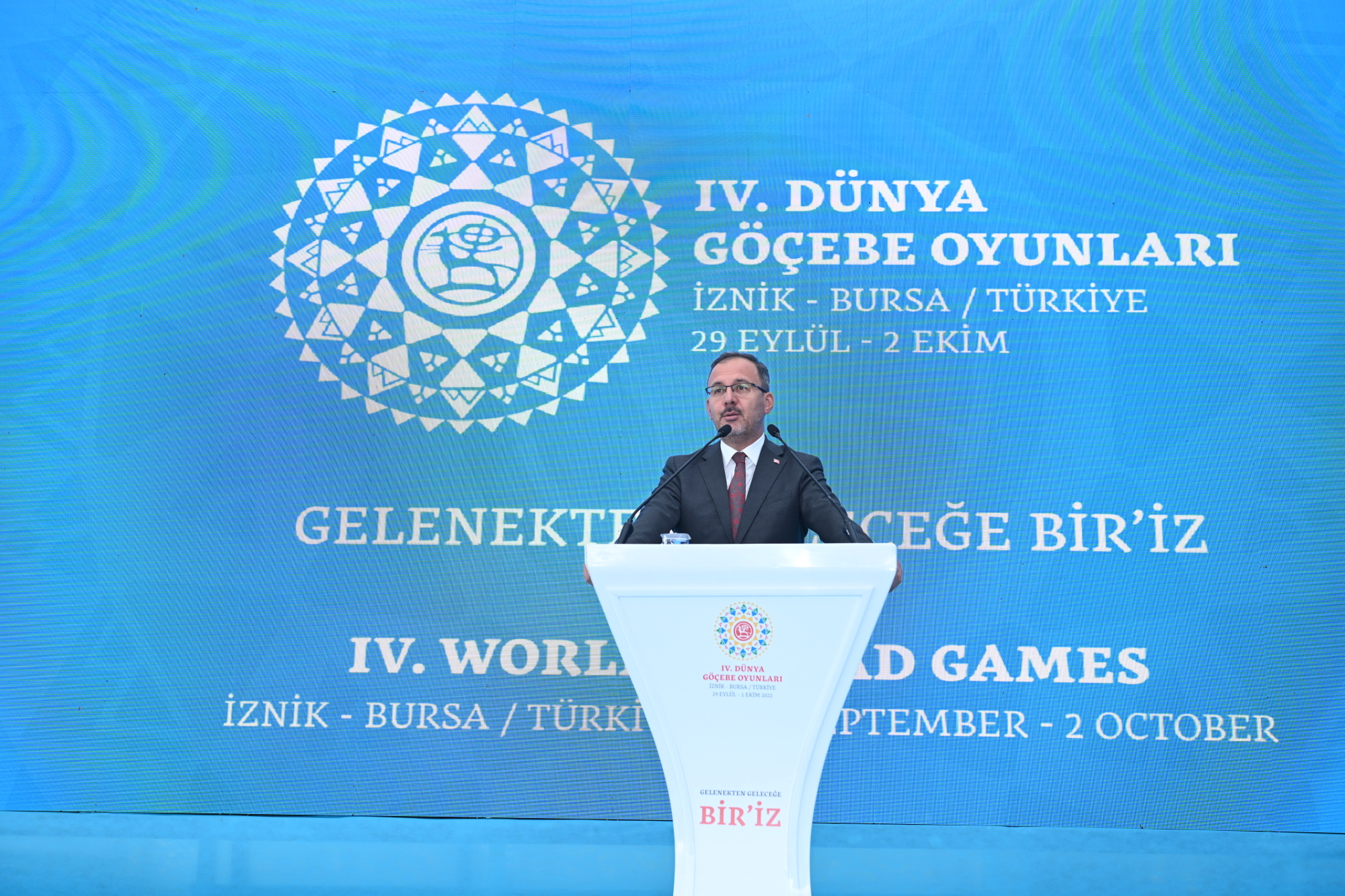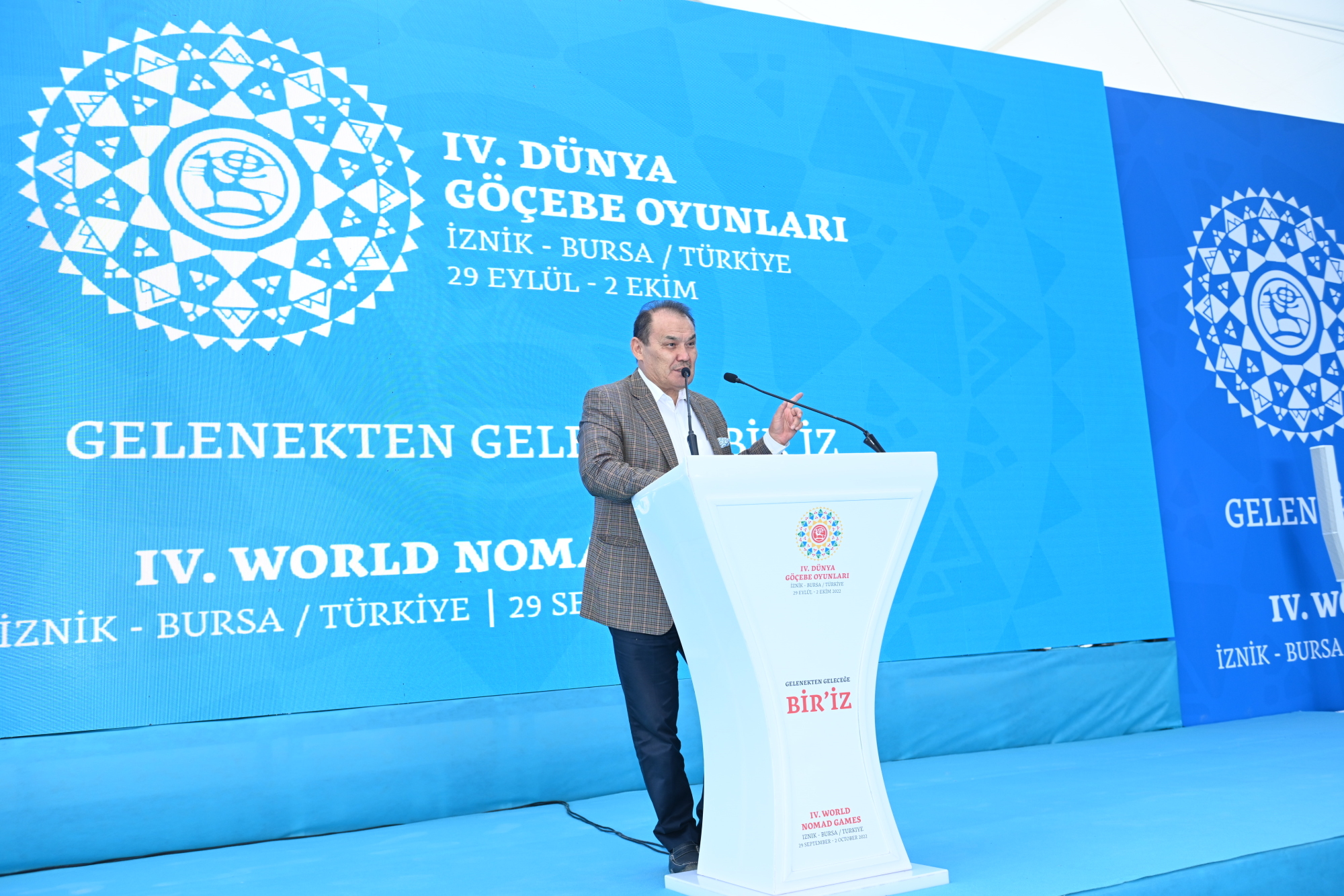 Dünya Etnospor Konfederasyonu Başkanı Bilal Erdoğan da Dünya Göçebe Oyunları'nın dünyanın en büyük geleneksel spor etkinliği olduğunu kaydetti. Türk Devletler Teşkilatı'na geleneksel sporların en önemli destekleyicisi uluslararası kuruluşlardan bir tanesi oldukları için teşekkür eden Erdoğan, “Kırgızistan'a, bu oyunları üç defa ülkelerinde başarıyla gerçekleştirdikleri için teşekkür ediyorum ve tabii ki Türkiye Cumhuriyeti Devleti'ne, Sayın Cumhurbaşkanına, Sayın Gençlik Spor Bakanına dördüncü oyunları başarıyla gerçekleştirmek üzere ortaya koydukları gayretten dolayı teşekkür ediyorum. Hazırlık Komitesi Başkanı Geleneksel Spor Dalları Federasyonu Başkanımız Hakan Bey'e ve diğer bütün ekip arkadaşlarına bu sahanın hazırlanmasında emeği olan Sayın Valimiz ve Büyükşehir Belediye Başkanımıza, İznik Belediye Başkanımıza teşekkür ediyorum. Bu oyunlarla birlikte kazanan tabii ki dünya olacak” dedi.