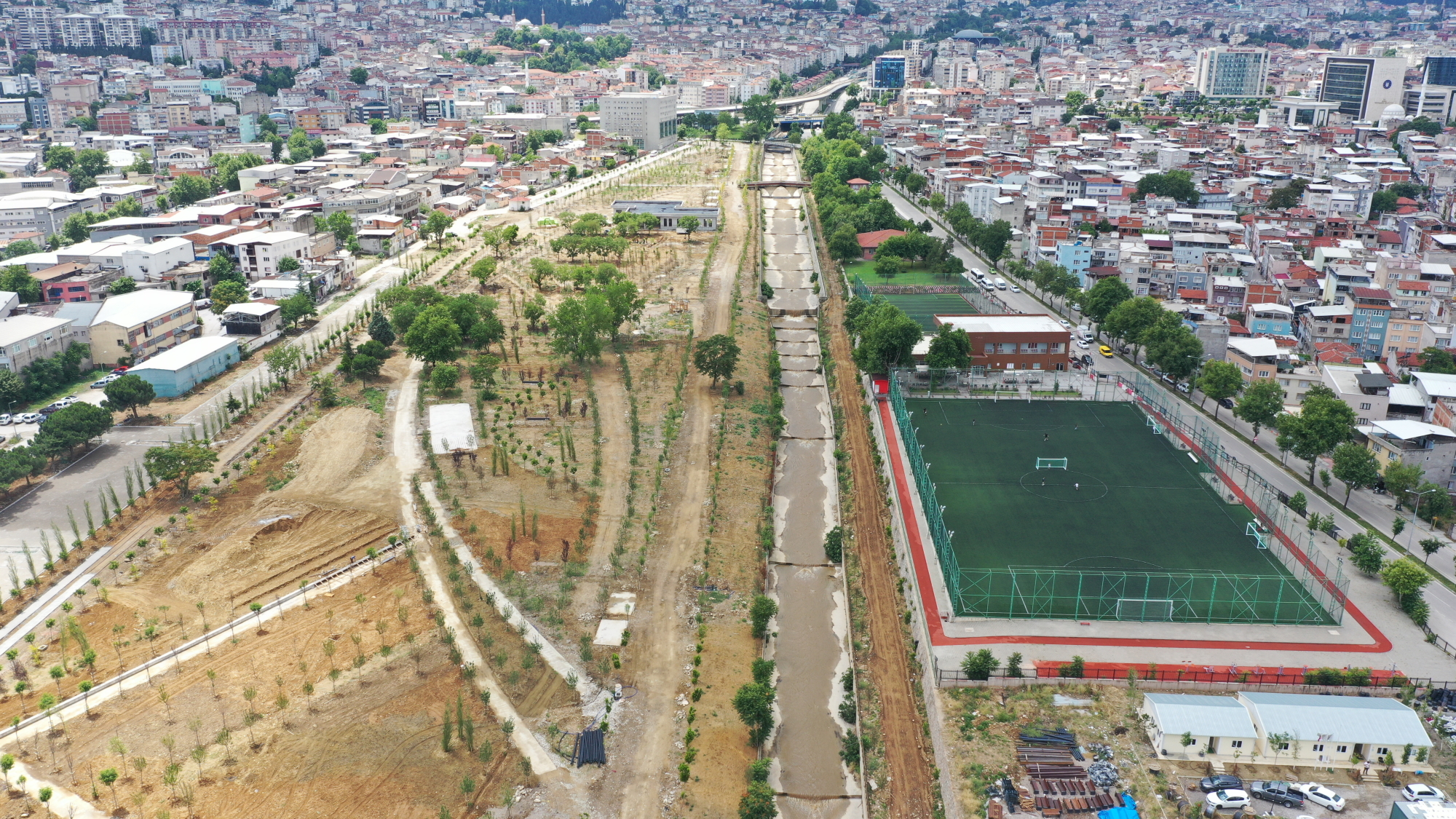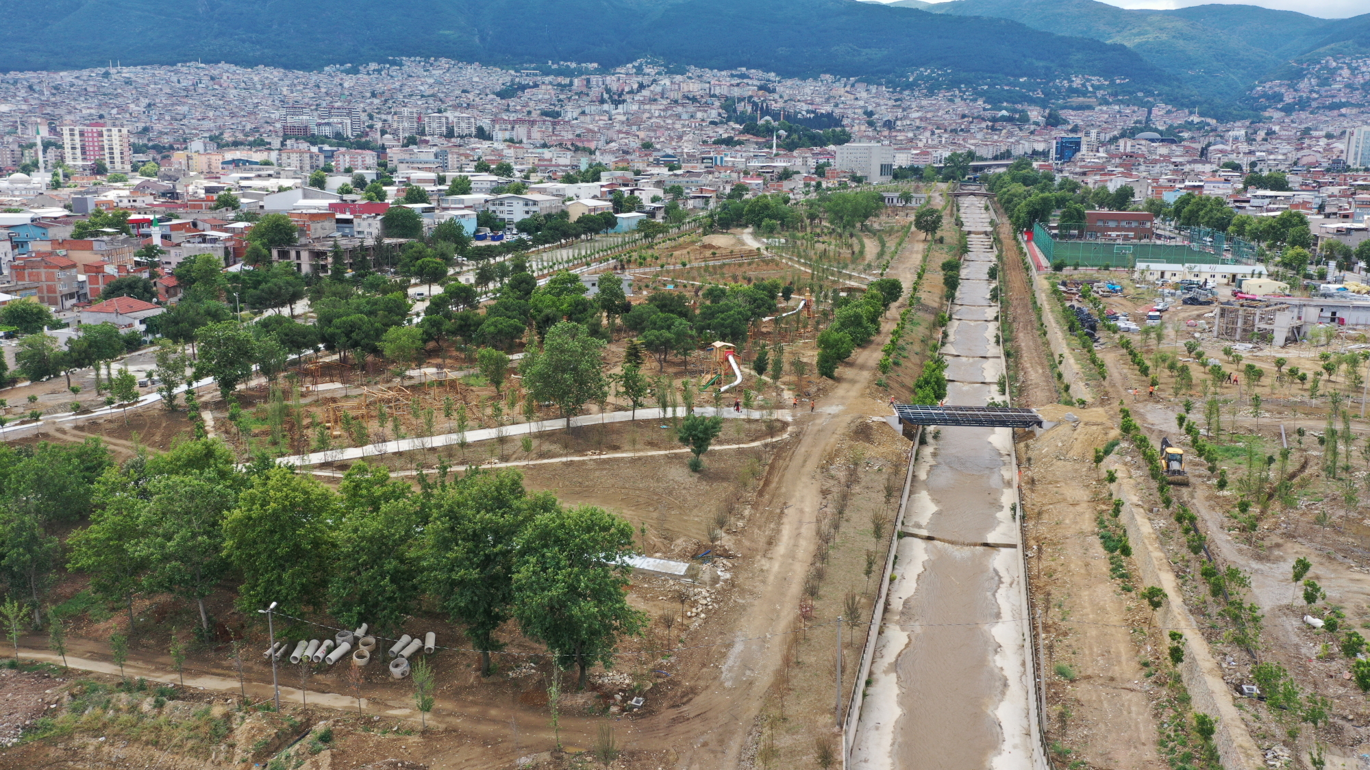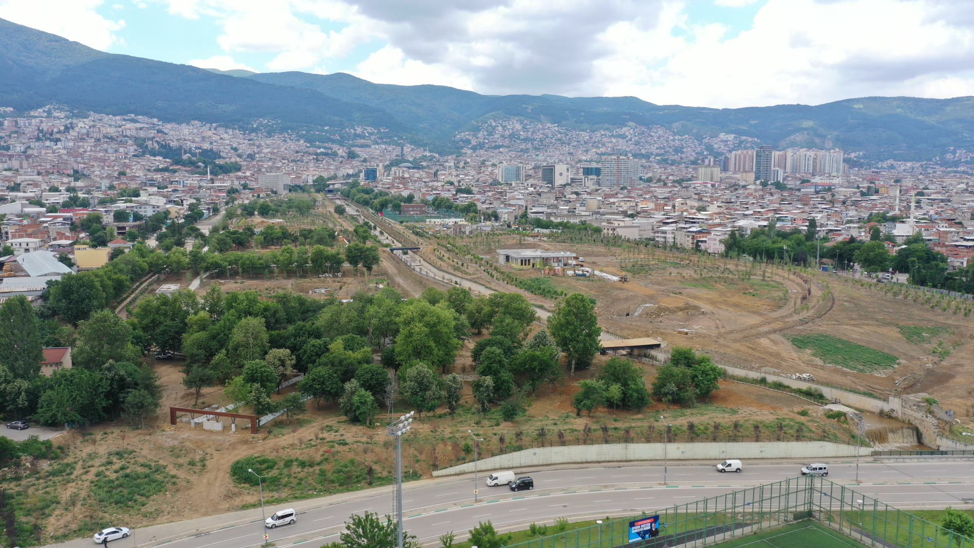BURSA - Bursa Büyükşehir Belediyesi’nin Çevre ve Şehircilik Bakanlığı işbirliğiyle bu dönem kente kazandırmayı planladığı Gökdere Millet Bahçesi’nde çalışmalar hızla devam ederken, alan yeşile bezenmeye başladı.