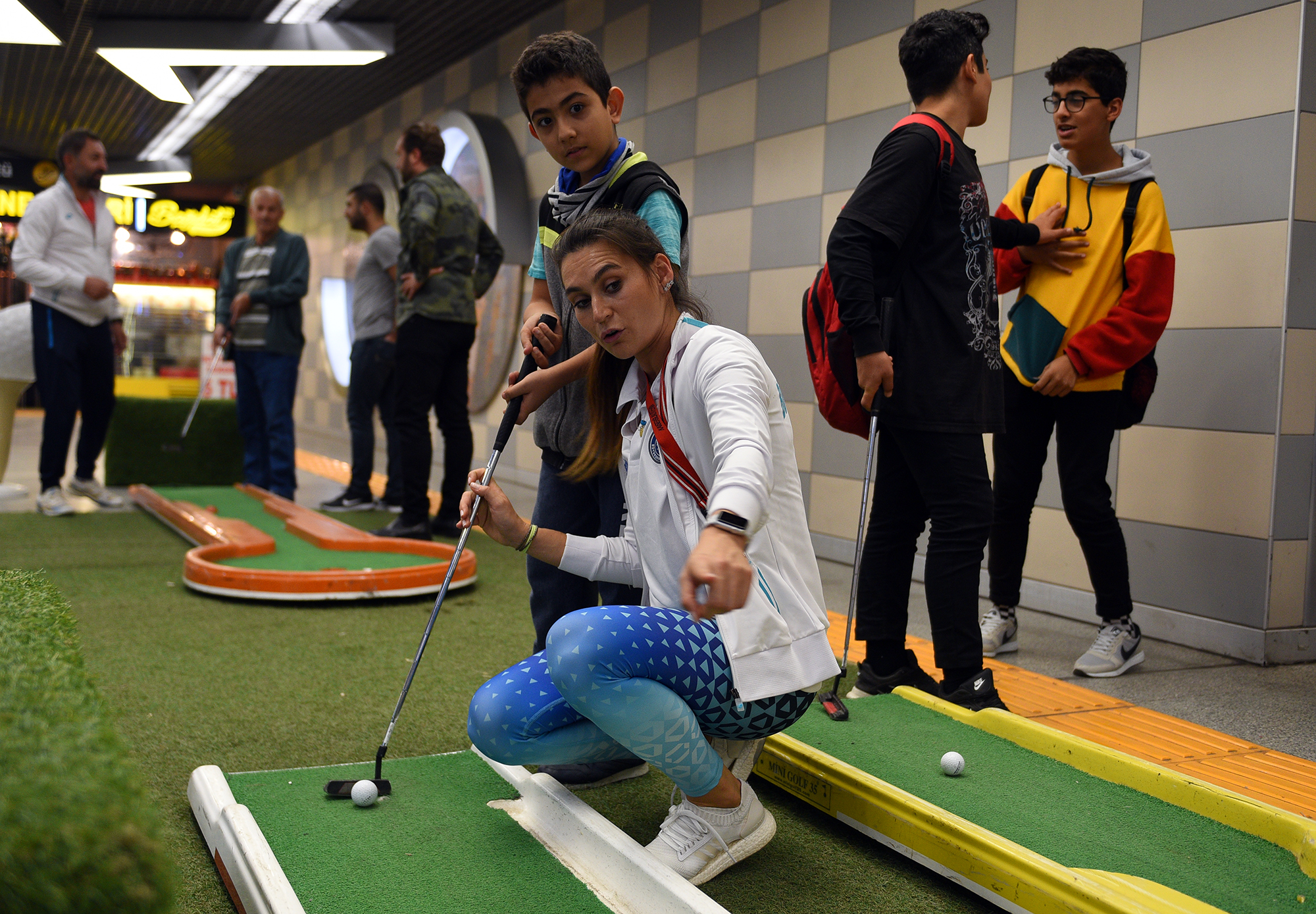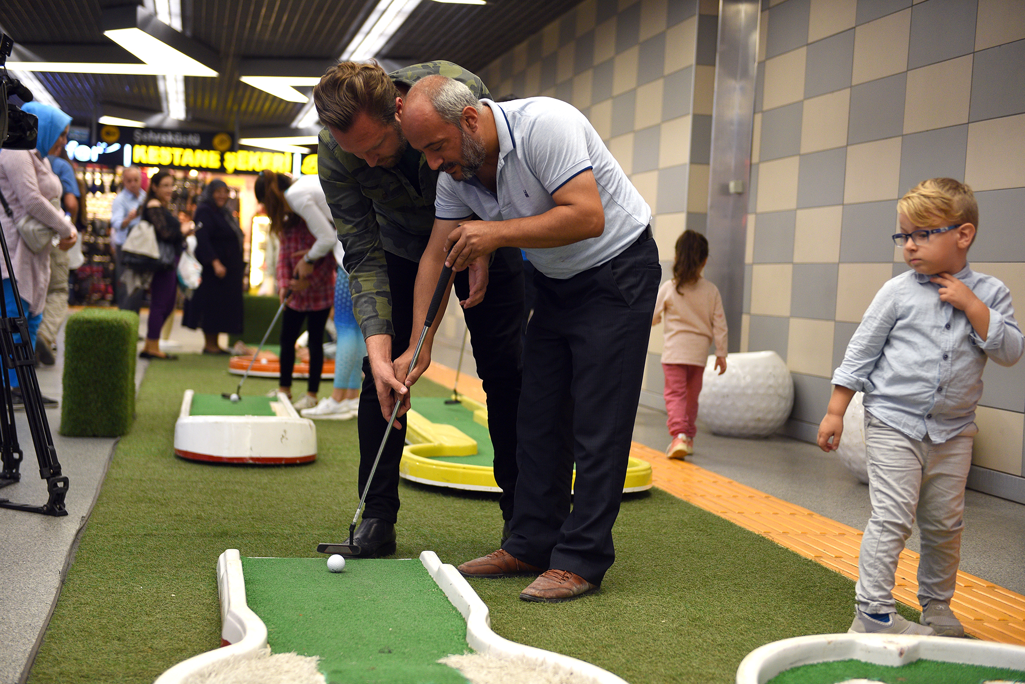 Yaz kış spor okulları, gençlik kampları ve okul sporları etkinlikleriyle sporu daha geniş kitlelere ulaştıran Bursa Büyükşehir Belediyesi, sporu tesislerin dışına taşıyıp, 7'den 77'ye herkesle buluşturmaya devam ediyor. Büyükşehir Belediyesi Gençlik ve Spor Hizmetleri Şube Müdürlüğü'nün Dünya Mini Golf Federasyonu Türkiye Temsilcisi Boğaziçi Golf Kulübü işbirliğiyle düzenlendiği etkinlik, dünyada yaygın olarak oynanan, Türkiye'de de son yıllarda ilginin giderek arttığı mini golf sporunu Bursalılarla buluşturdu. Geçtiğimiz ay Kent Meydanı’nda yapılan ve büyük ilgi gören mini golf etkinliği, bu kez yer altına taşındı ve Şehreküstü Metro İstasyonunda yapıldı. İstasyona kurulan golf platformlarını gören vatandaşlar önce meraklı gözlerle ne olduğunu anlaya çalışırken, kısa sürede golf sopalarını ellerinde buldu. Görevlilerden oyunun nasıl oynanacağını öğrenen vatandaşlar, platform üzerindeki deliğe golf topunu geçirebilmek için mücadele etti. Sadece çocuklar ve gençler değil tüm vatandaşların büyük bir merak ve heyecanla eşlik ettiği organizasyon renkli görüntülere sahne oldu.
