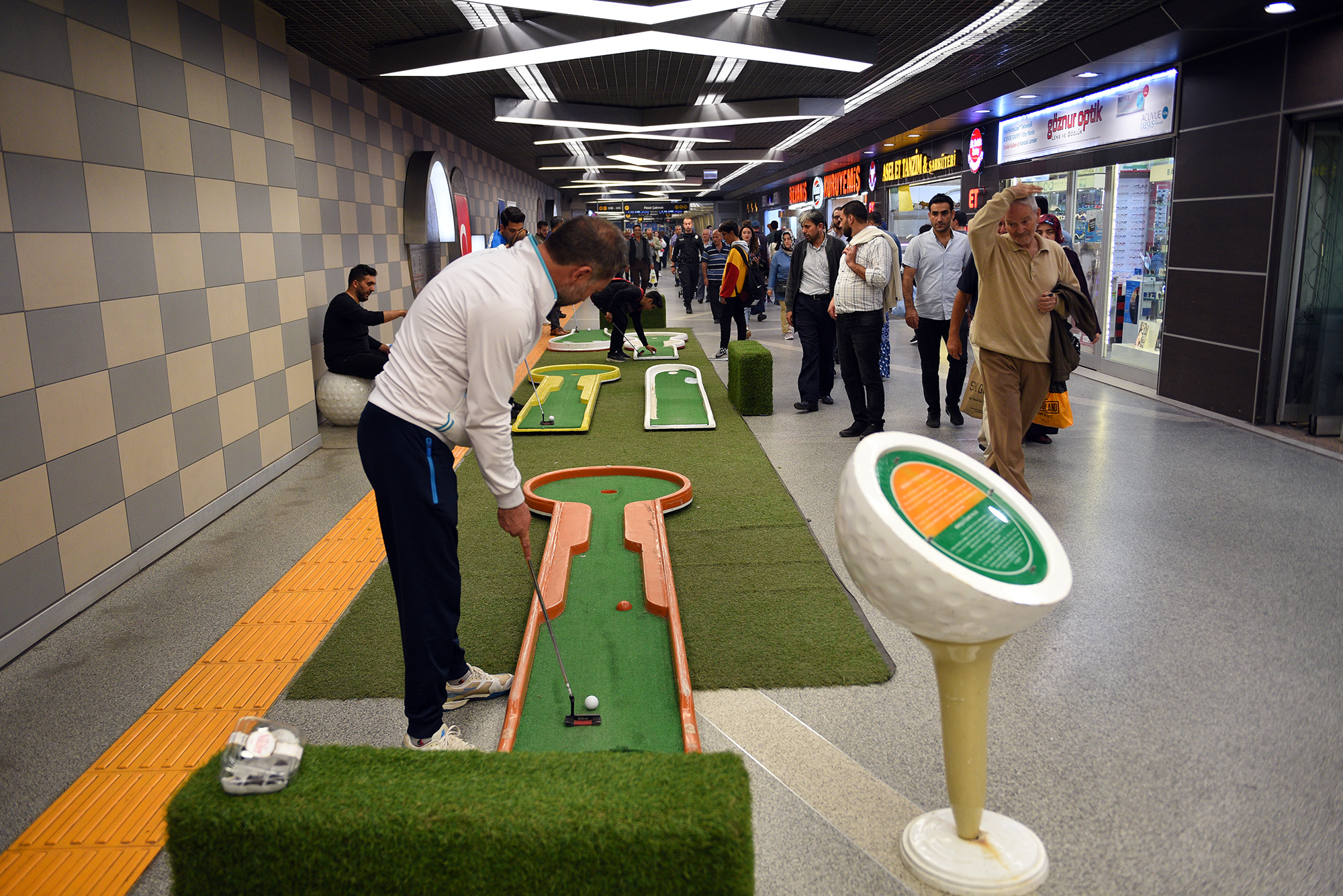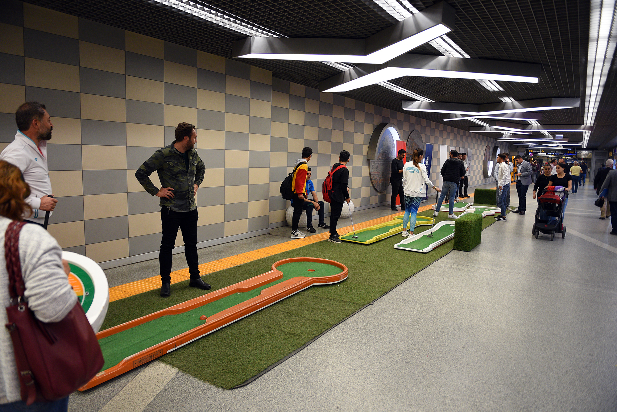 BURSA - Kentin farklı noktalarında düzenlediği etkinliklerle Bursalıları sporla buluşturan Büyükşehir Belediyesi’nin metro istasyonunda gerçekleştirdiği mini golf etkinliği vatandaşlardan büyük ilgi gördü.